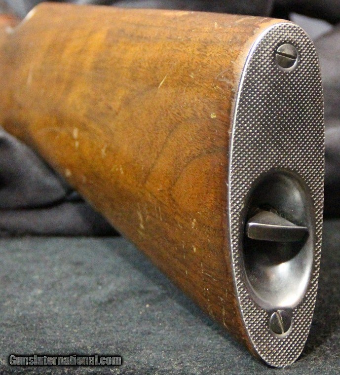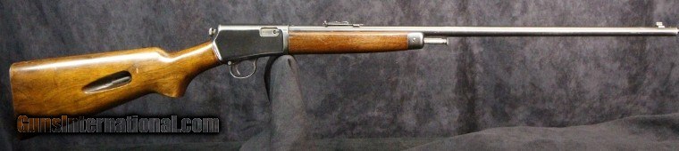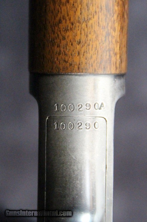 Description: .22rf, lr, 23 inch barrel, blue finish, walnut stock and forearm, original sights, 1951. Condition:bright bore, 95% barrel blue thinning in places, 70% receiver blue, excellent wood, excellent mechanically, SOLD Curio/Relic: Yes |
