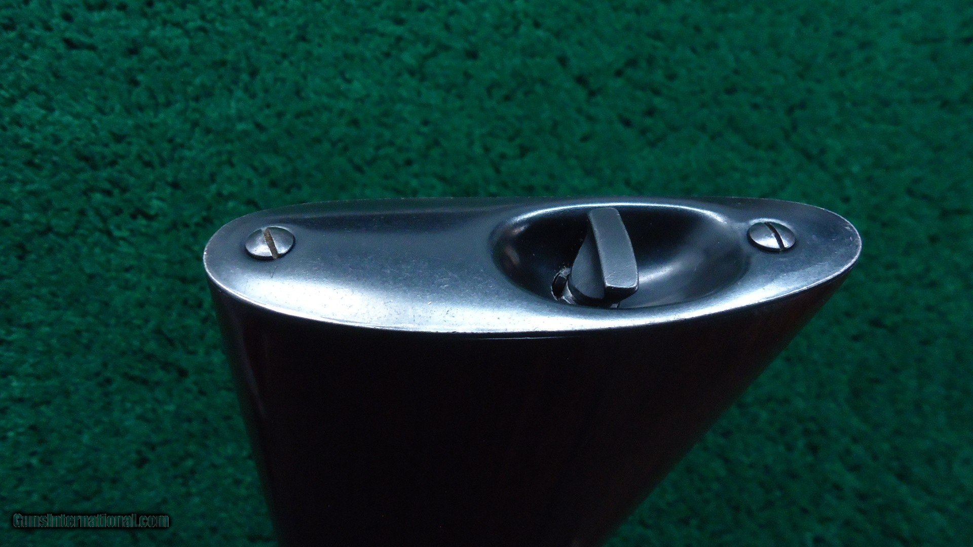 Description: 23 inch round barrel. Sights include original Winchester No. 75 bead front with a filler in the rear dovetail to accommodate a Lyman 1A locking tang sight. Take-down frame. 10 shot tube magazine loaded through the right side of the plain walnut pistol grip stock with matching forearm. Flat steel shotgun style buttplate. Manufactured in 1946. Condition rates about 90% overall showing light use having almost all of the original finish with scattered light wear and handling marks. Nice all original gun! Leroy Merz Antique Firearms specializes in antique and vintage Winchesters and other fine American firearms. Since 1965 Mr. Merz has taken part in the world of firearms and has been a contributor to many well known reference books. We have hundreds of additional guns in every price range at our home online. Search for Merz Antiques in google. SOLD Curio/Relic: Yes Rifle Caliber: .22 Long Rifle |