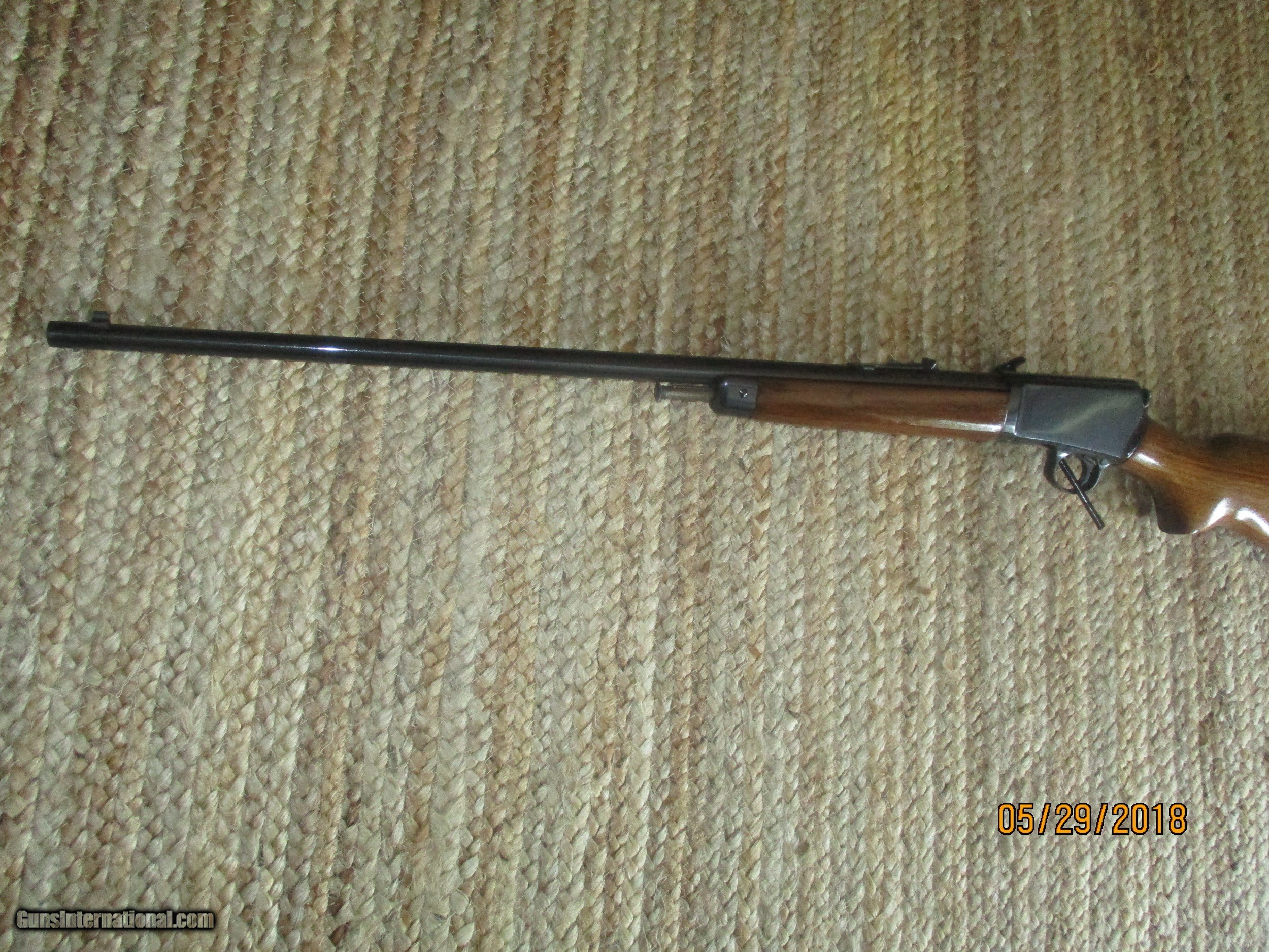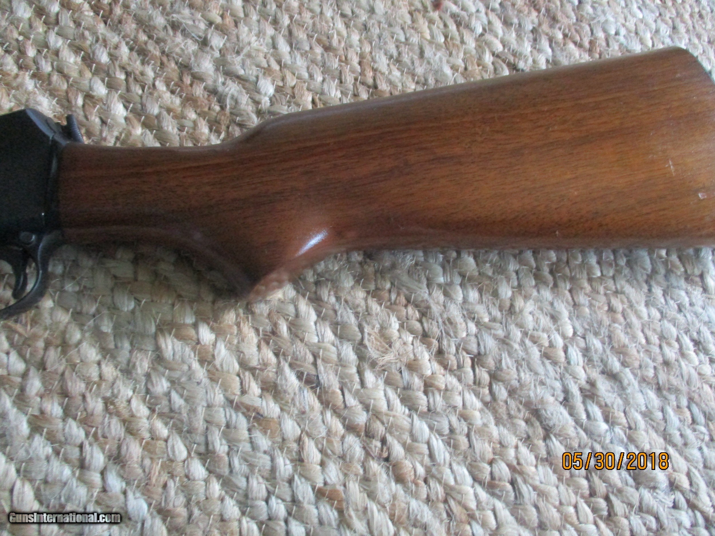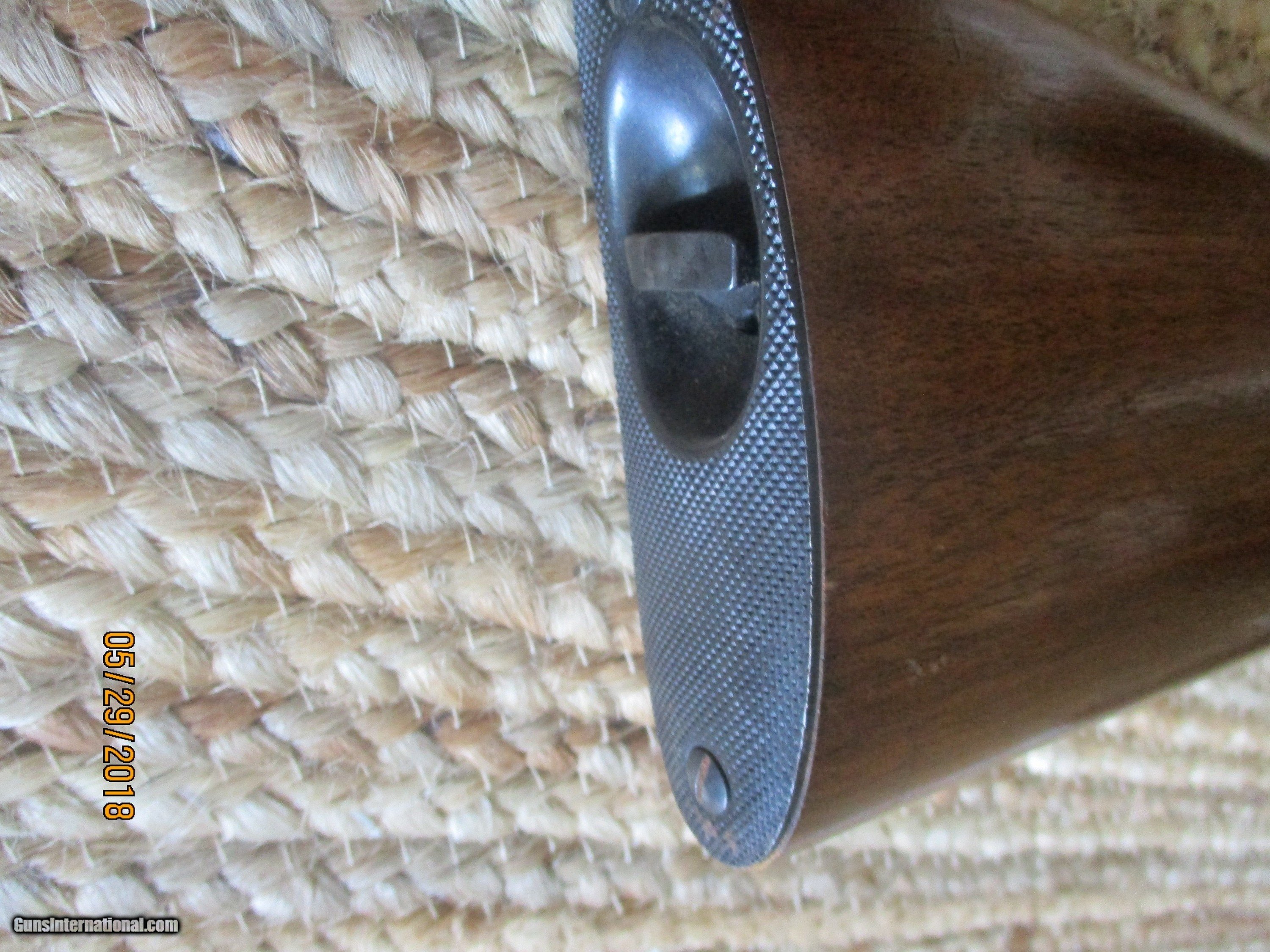 Description: 23" bbl., standing front sight, open rear, 10 shot tube magazine, American walnut stock with ebony tip forearm, checkered steel buttplate, 98% 99% overall as new! SOLD |