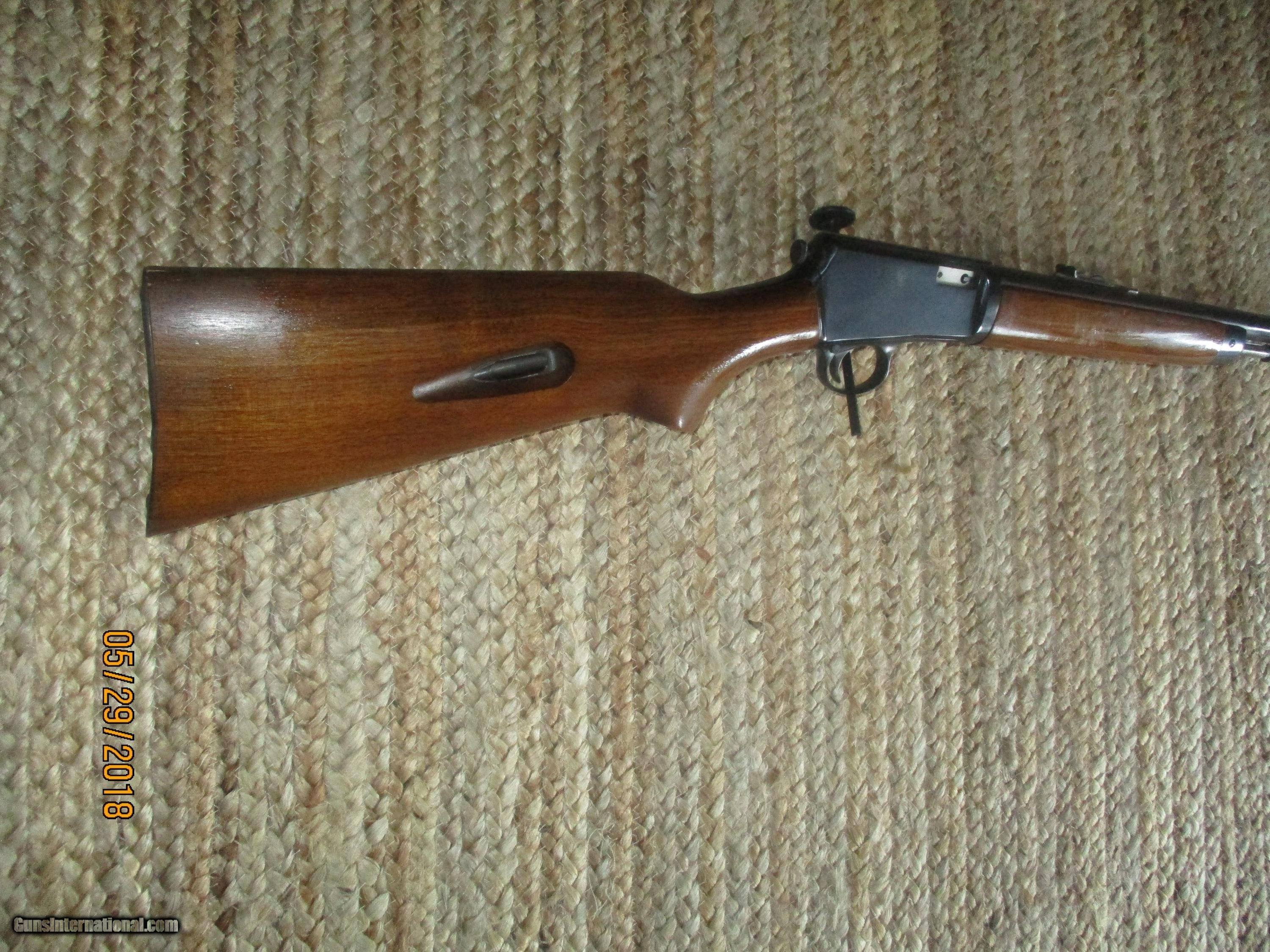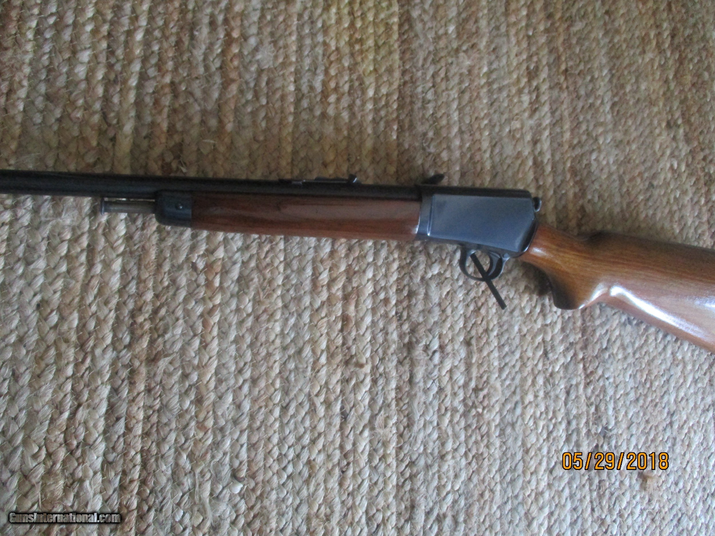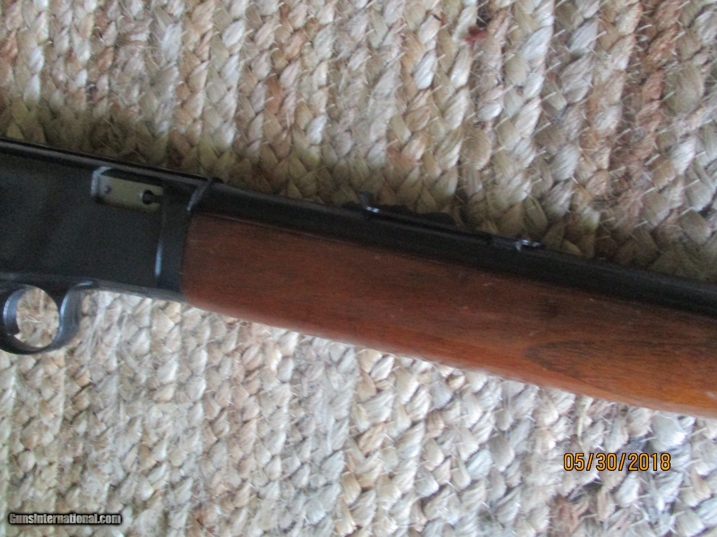 Description: 23" bbl., standing front sight, open rear, 10 shot tube magazine, American walnut stock with ebony tip forearm, checkered steel buttplate, 98% 99% overall as new! SOLD |