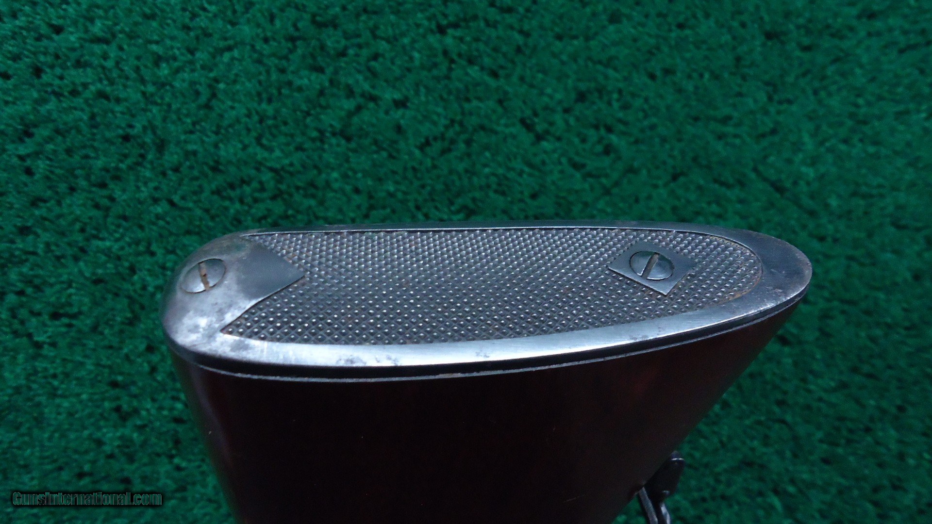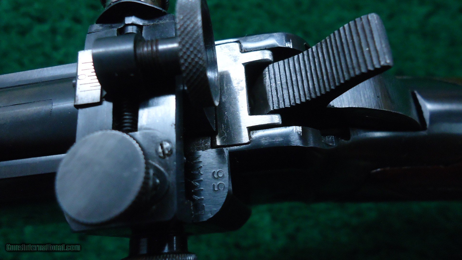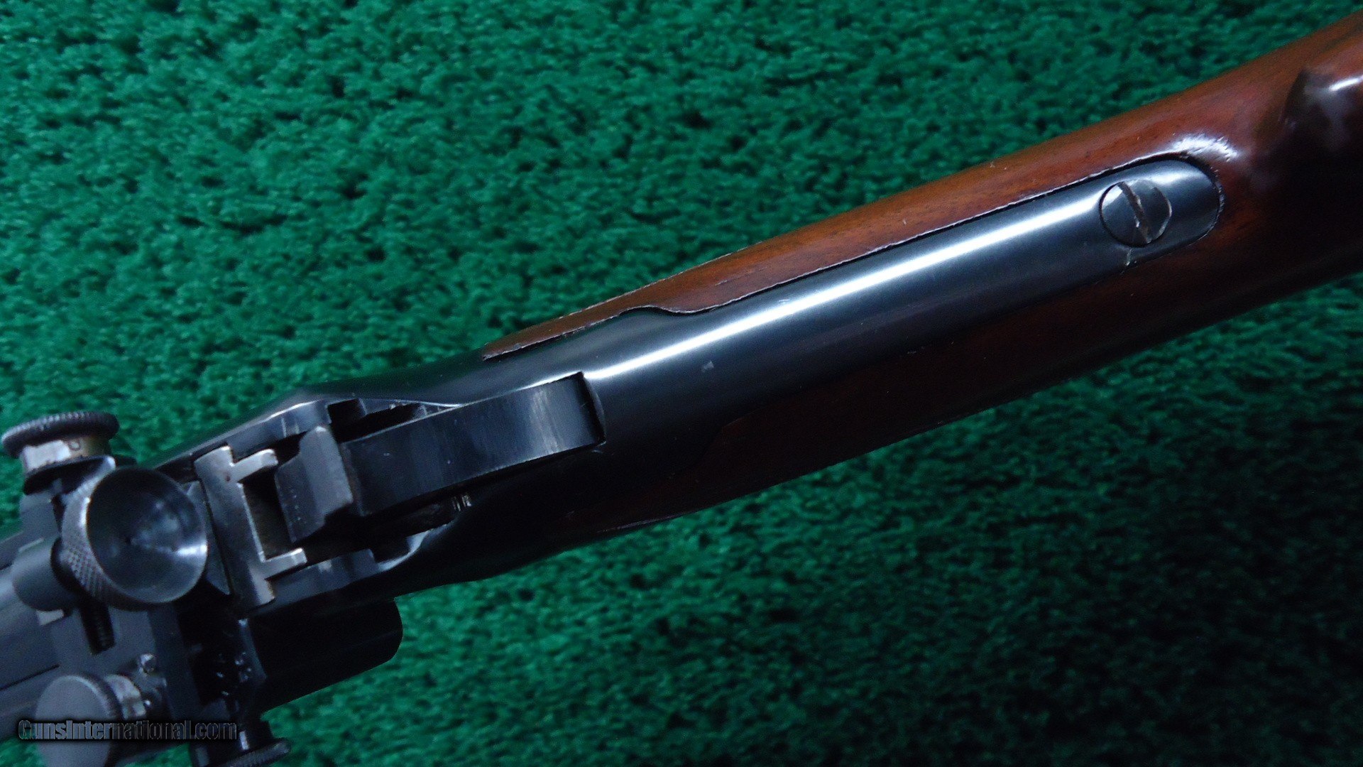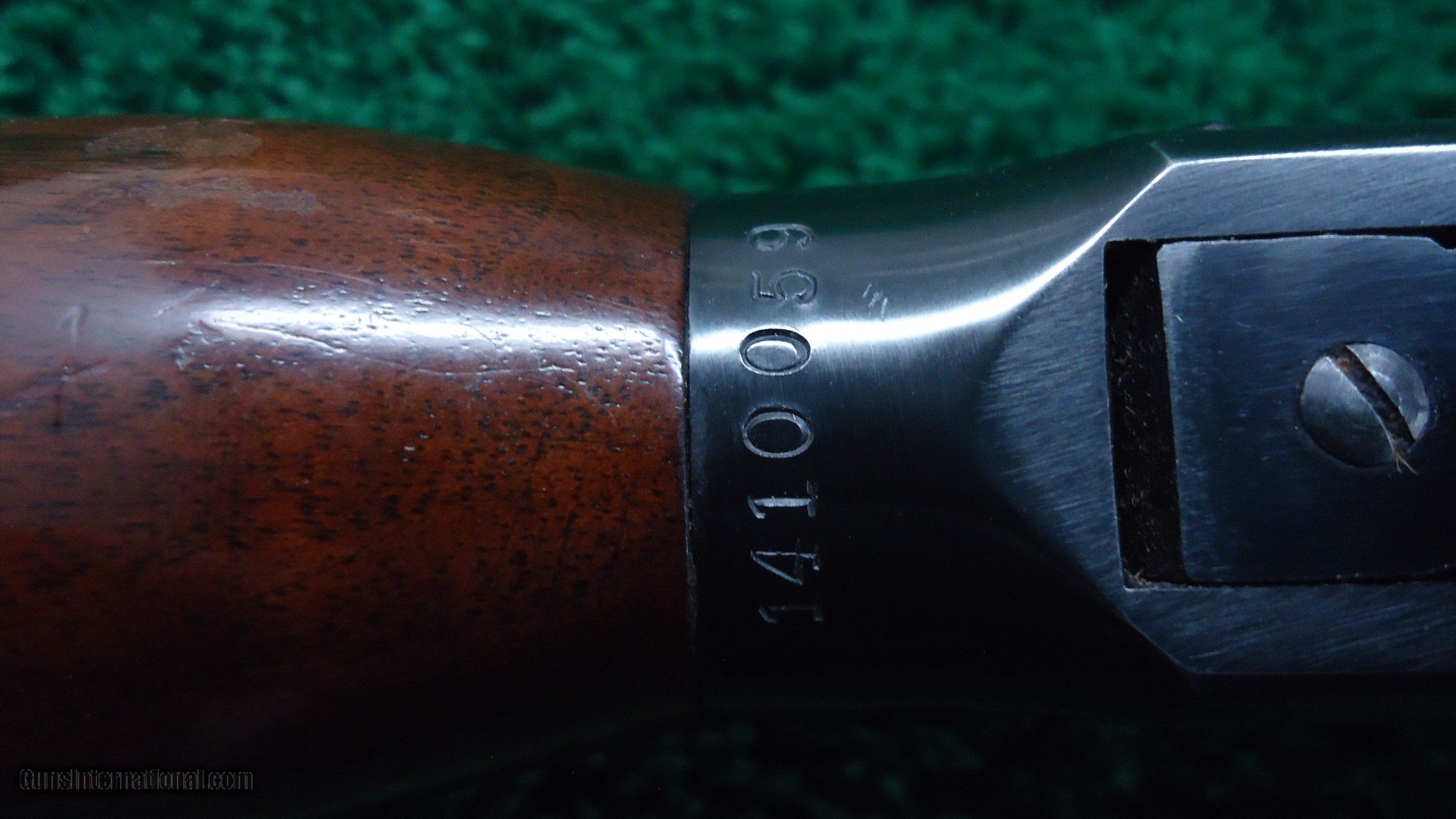 Description: 24 inch round barrel chambered in 30 WCF caliber with a bright shiny excellent bore. Beautiful gun that has most all of the blue on the barrel and receiver. Features the quick-detach sling swivels. Hooded front sight and the optional Lyman 56 side mount receiver sight. The rear barrel sight has been removed and has a blank in the dove tail. Checkered pistol grip stock has sharp checkering and appears to have had a light coat of linseed oil added. Crisp action. Beautiful gun that would be hard to improve upon. Leroy Merz Antique Firearms specializes in antique and vintage Winchesters and other fine American firearms. Since 1965 Mr. Merz has taken part in the world of firearms and has been a contributor to many well known reference books. We have hundreds of additional guns in every price range at our home online. Search for Merz Antiques in google. SOLD Curio/Relic: Yes Rifle Caliber: .30-30 Winchester |