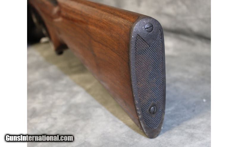 Description: Winchester Model 64 is a right hand lever action repeating rifle in .32 W.S. Cal. It has a 24 inch barrel. A raised blade front sight and an adjustable Lyman peep sight. The butt stock is a smooth grip walnut pistol grip. The forearm is a smooth grip walnut with a steel cap. Serial Number 1116994 (1940). There is a small crack at the lower back of the stock, still very solid. .32 Winchester Special SOLD Curio/Relic: Yes Metal Condition: Very Good Wood Condition: Very Good Bore Condition: Good Barrels: 24.0 Stock Dimensions: 13 1/8" LOP Fore End: Smooth grip walnut with a steel cap Butt Pad: Checkered steel plate Item Location: Auburn Hills, MI |