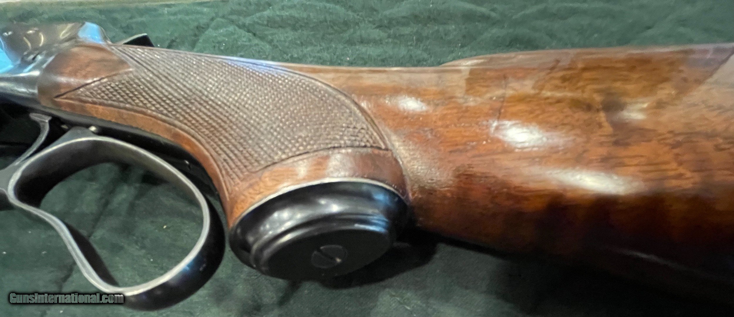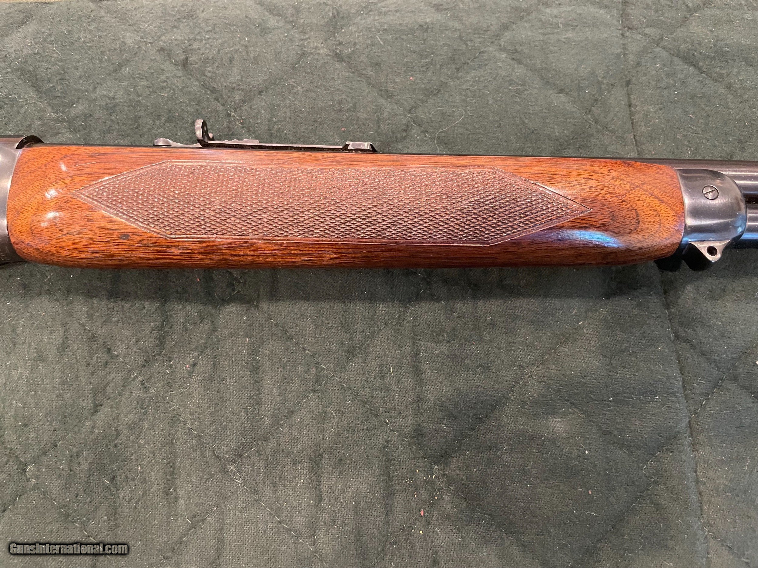 Description: SOLD PENDING RECEIPT OF FUNDS: Winchester Deluxe Model 64 Made in 1955. 24" Barrel with correct sights and Front Sight Hood. Wood is wonderful, with handling marks but none are severe in nature. Certainly NO cracks, or splits. Steel Buttplate and Pistol Grip cap. Metal a few nicks and scratches, and some browing on the inside of the lever handle. A few scattered spots on the metal finish. Original Blue to be sure. It is not perfect, but it is a VERY nice example. Perfect bore. Nice enough to collect, and not so pristine it cannot be used carefully. Thanks for your interest. SOLD Curio/Relic: Yes Rifle Caliber: .30-30 Winchester Manufacturer: Winchester Model: 64 Serial Number: 2022xxx Barrel Length: 24 Condition: Excellent plus Metal Condition: Very good plus Wood Condition: Excellent ++ Bore Condition: Perfect Manufacture Date: 1955 |
