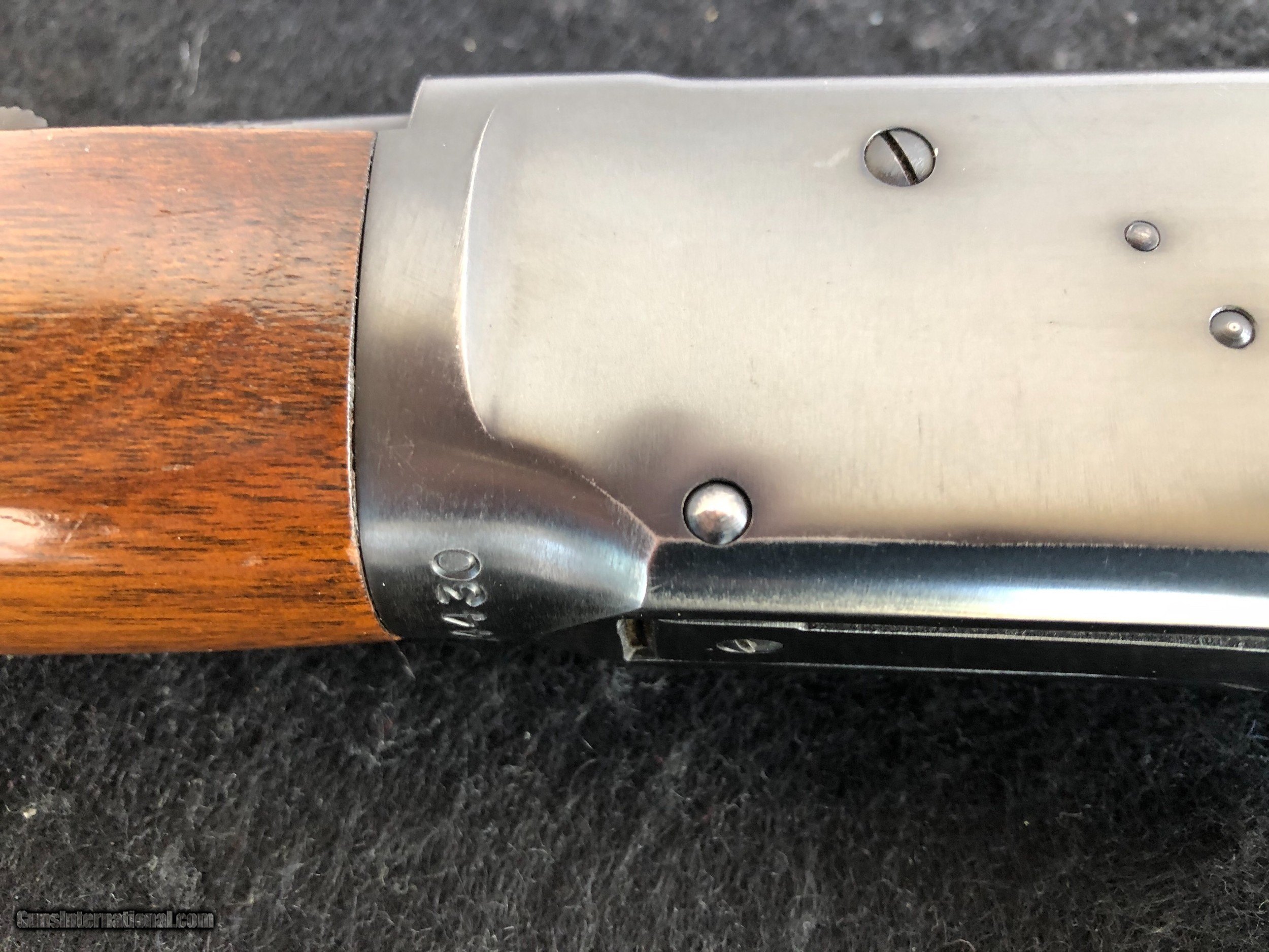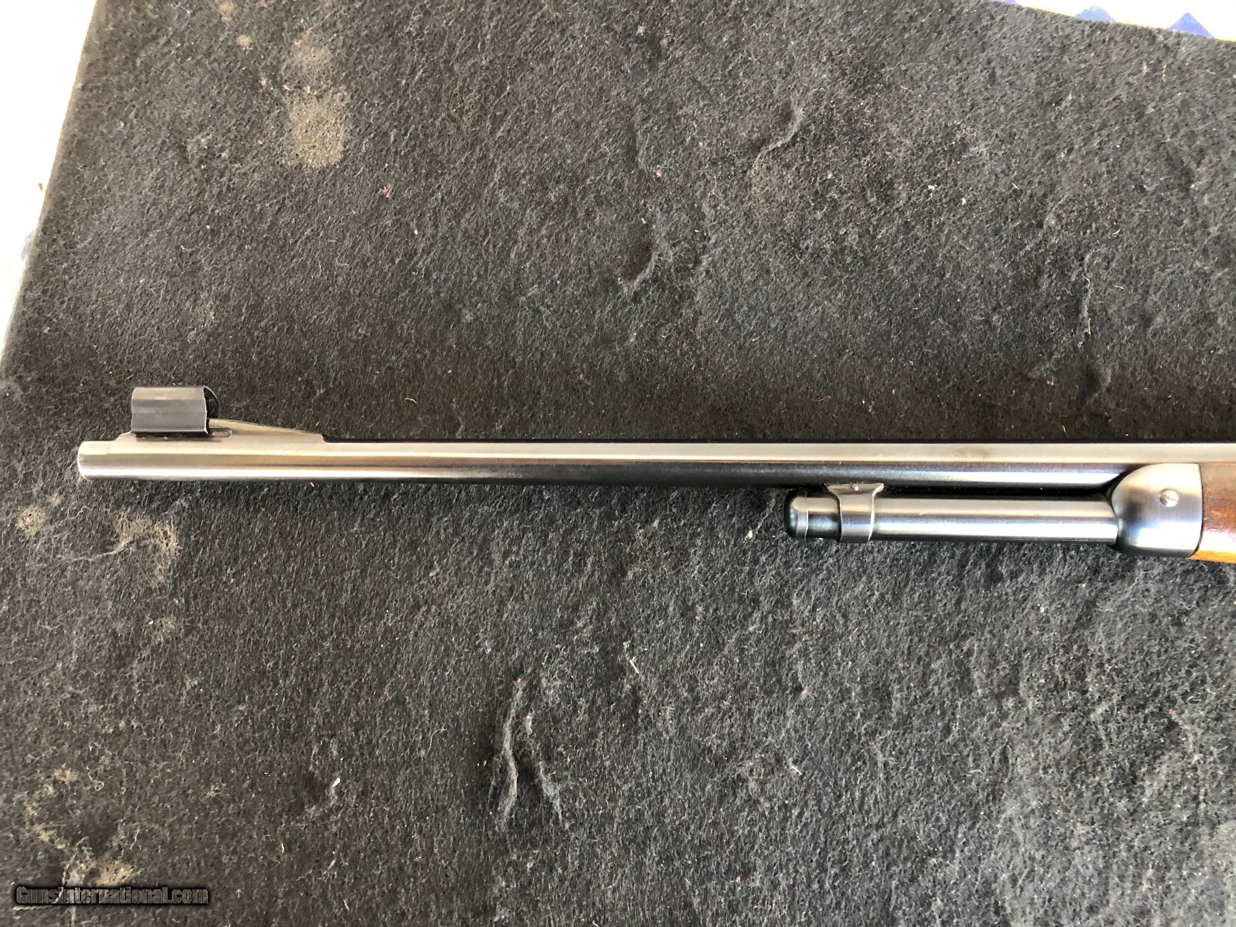 Description: SALE PENDING. Model 64 Standard grade, .32 Win Spec. Made 1949. Exterior and bore excellent. Screws untouched. Very slight handling marks, slight edge wear at front of receiver, and small scratch on bottom of triggerguard keep it from 98+%. (see photos.) Everything original is there, from buttplate to front sight hood. 12 rounds in vintage .32 WS box included (shipped separately). Eight ecpended rounds might be only ones fired in this rifle. Price includes shipping. SOLD Curio/Relic: Yes |
