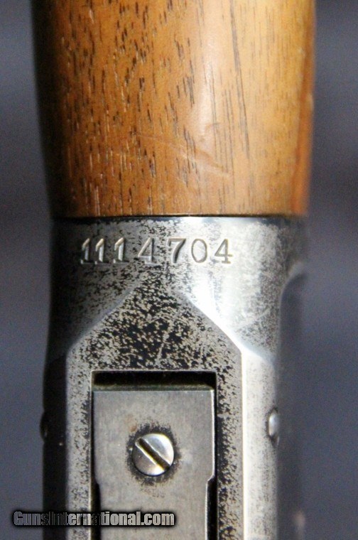 Description: .32ws, #1114704, 24 inch barrel, blue finish, walnut stock and forearm, original sights, 1939. Condition:excellent bright bore, 97% barrel blue, 80% receiver blue, stock has scuff marks from use, varnish wear, mechanically excellent, excellent marks. SOLD Curio/Relic: Yes |