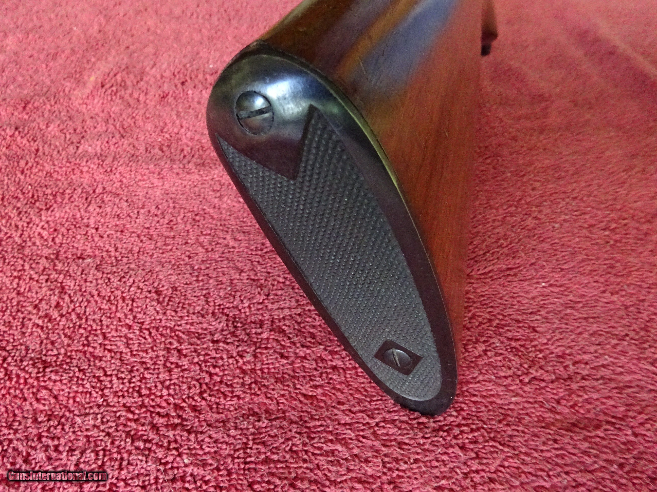 Description: WINCHESTER MODEL 64 30-30 WIN. 24" BARREL, MIRROR PERFECT BORE, RAMP FRONT SIGHT, STEP ADJUSTABLE REAR SIGHT. PISTOL GRIP STOCK, SMOOTH FOREARM, SLING SWIVELS, CHECKERED STEEL BUTTPLATE. ALL THE METAL SURFACES HAVE 100% PERFECT ORIGINAL BLUE - NOT THE SLIGHTEST BIT OF WEAR. THE WOOD HAS ALL THE VARNISH FINISH, NO RUBS OR WORN SURFACES. THERE ARE A FEW VERY MINOR INDENTATIONS IN THE VARNISH FINISH. THE GUN WAS MADE IN 1955. I CAN'T IMAGINE FINDING A NICER ORIGINAL EXAMPLE. $1750.00 + $70.00 Insured shipping to an FFL address. Layaway is available. See all Pats gun listings on this site! We also have hundreds of ORIGINAL gun company advertising & memorabilia pieces available for sale on our site SPORTINGCOLLECTIBLES. We have no reprints or reproductions. Email for more information. If you need to call, morning or evenings are best, and please note Seller's Inventory number. SOLD Curio/Relic: Yes |