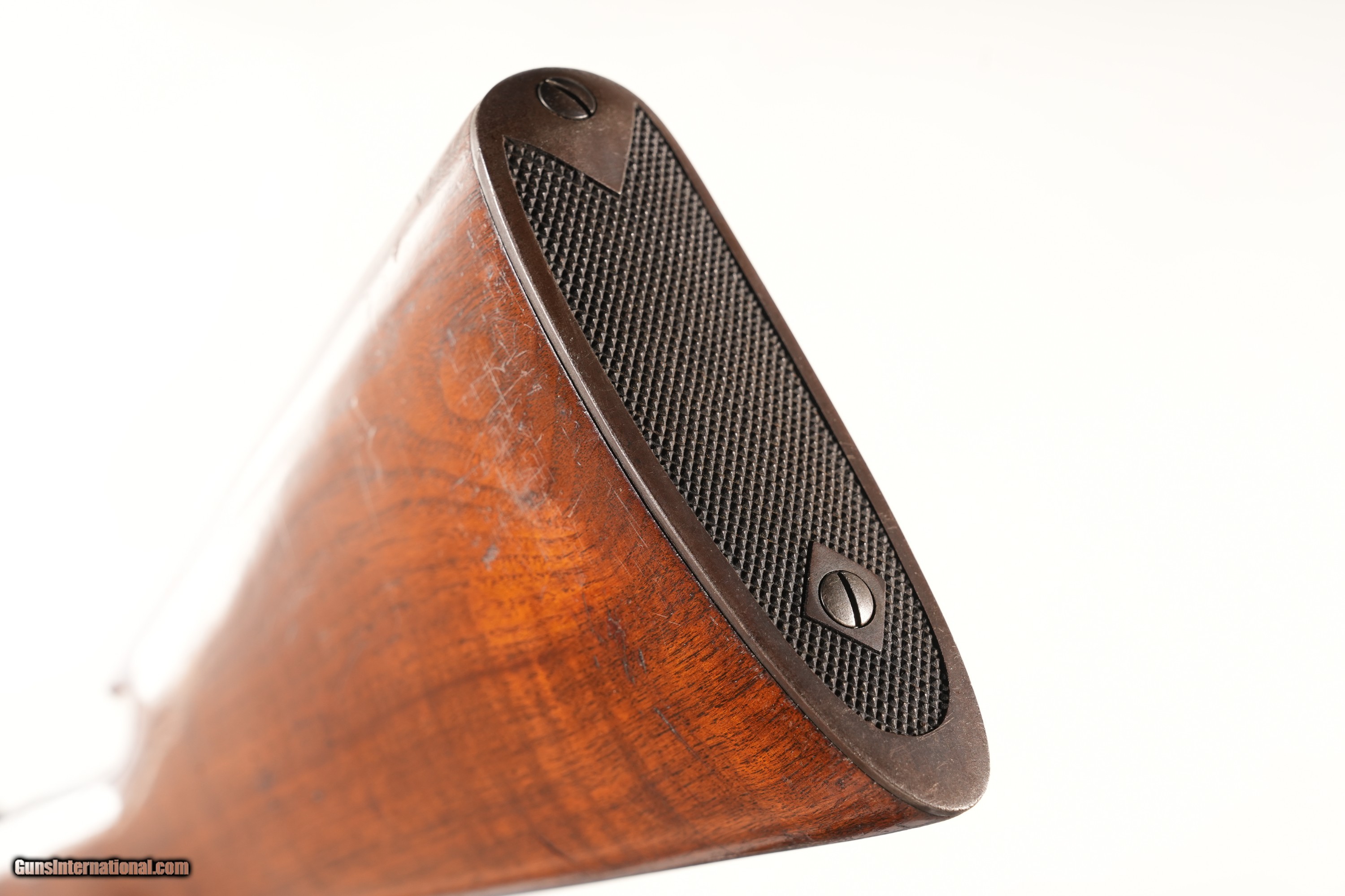 Description: Pre-War Winchester Model 65 Cal 218 Bee Lever action rifle with Bolt Peep sight. Mfd, 1938. 24" tapered round Bbl with hooded blade front sight and bolt Peep rear sight. Varnished pistol grip walnut stocks with checkered steel butt plate. Condition, Very fine with excellent bright bore. Most all blue finish remains with stocks being excellent. Bore is bright Bolt Peep is complete and operates. Mechanically excellent. • Free Shipping, No Credit Card Fees. • Lay-a-way available for this firearm. • 1/3 Down, a 1/3 in 30 Days, 1/3 in 60 Days. SOLD Curio/Relic: Yes Manufacturer: Winchester Model: 65 Serial Number: 1003732 Barrel Length: 24 |