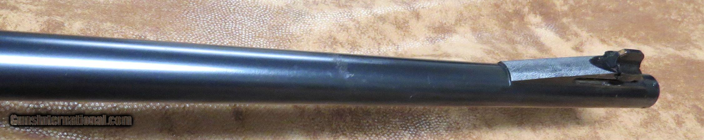 Description: Here is a very nice original Winchester Model 65 in the very popular .218 Bee caliber set up the way you like to find it from the factory. NO extra holes in the receiver. Very honest gun, 24" barrel with factory bolt peep sight. This gun still carries the majority of it's bright factory blue. Receiver shows LESS than typical blue flaking.... with flaking on sides & bottom... not oxidized or pitted, just flaked. Blue remaining is bright & strong with flaked areas nicely going to a honest patina. Barrel remains a strong bright Winchester factory blue with minor ares of oxidation in a small handful of areas. Magazine cap & lever shows most factory blue remaining with minor areas of flaking. Beautiful untouched screws. Operates crisply. Strong bright unpitted bore. Nice original bolt peep sight, front sight Redfield bead. Correct barrel sight filler. Swivels added, could be removed easily. Typical plain grain M65 stock & forend with nice original finish. Unsanded. Uncracked. Very minor handling marks. Original buttplate, nicely fitted with minor oxidation. Priced to sell. SOLD Curio/Relic: Yes |