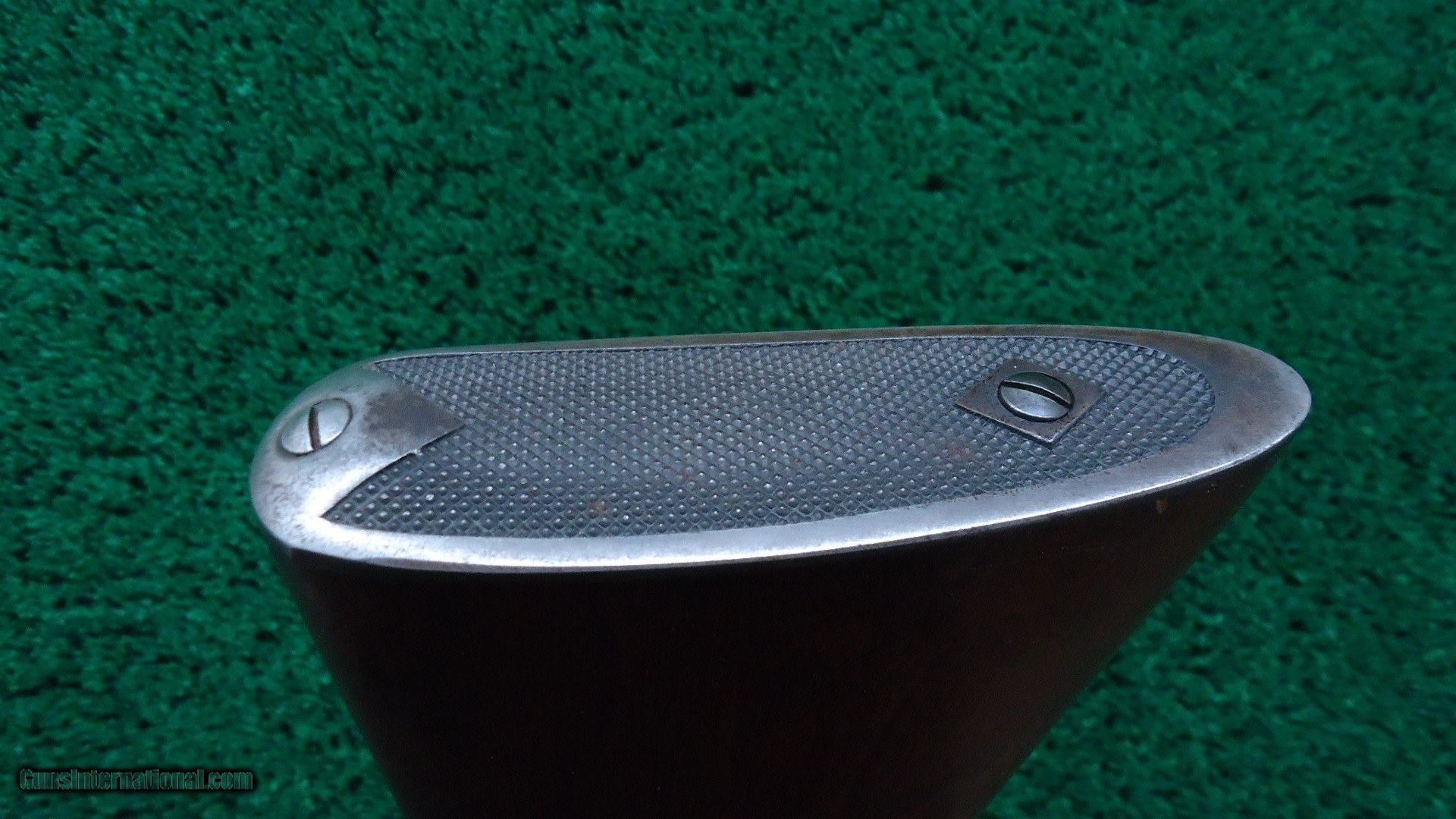 Description: 24 inch round barrel chambered in 218 Bee caliber that has an excellent bore. Bright and shiny with strong rifling throughout. Barrel retains about 92% original blue. Button magazine. Receiver has two drilled and tapped holes added with plug screws on the left side. Receiver has about 40% original blue mostly on left side and in protected areas. The balance flaked and turned a pleasant deep brown gray patina. Lever shows about 85% bright blue. Bolt is slotted for a bolt peep that is no longer present. Remaining sights include a ramped front with hood and a sporting rear. Smooth walnut pistolgrip buttstock and forend are very good plus retaining most original finish with typical light handling marks and correct checkered steel buttplate. Leroy Merz Antique Firearms specializes in antique and vintage Winchesters and other fine American firearms. Since 1965 Mr. Merz has taken part in the world of firearms and has been a contributor to many well known reference books. We have hundreds of additional guns in every price range at our home online. Search for Merz Antiques in google. SOLD Curio/Relic: Yes Rifle Caliber: .218 Bee |