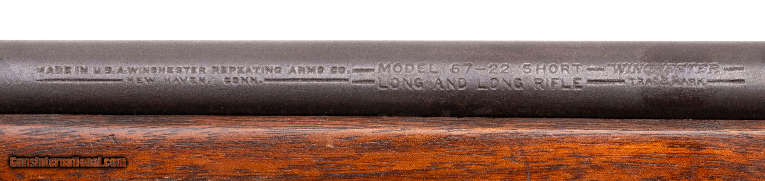 Description: "Made circa 1940s. 22LR with an 27"" barrel. Bore is bright with strong rifling. Pre-1964 Bolt-Action rifle. Finish is in good condition with patina browning present along the barrel. Wood stock is in very good condition with wear present along the stock. Overall condition is very good. SOLD Curio/Relic: Yes |