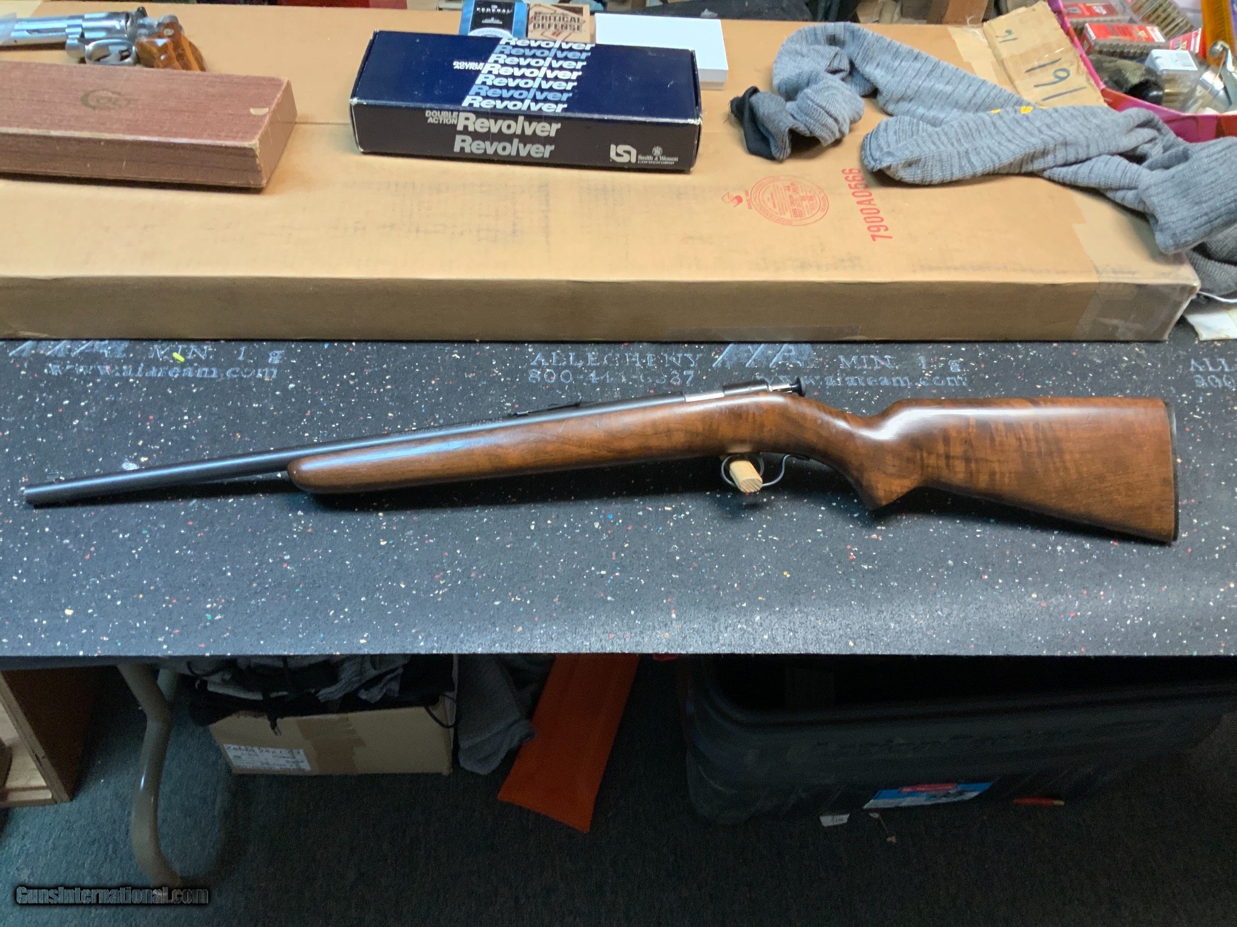 Description: (Sale Pending)Winchester model 67 single shot 22 caliber rifle. This is the "Boys" version with the shorter barrel and shorter stock for a youth or smaller person. This is an early gun as they later were stamped 67A. Nice wood on this one to boot. Pictures show what you get. Please add $45 for shipping and insurance to your FFL or C&R. if your FFL dealer will not except from a private party please add $20 to the cost of shipping to cover my dealers fees. SOLD Curio/Relic: Yes Rifle Caliber: .22 Long Rifle Manufacturer: Winchester Model: 67 Serial Number: N/A Condition: Very Good Metal Condition: Excellent Wood Condition: Very Good Bore Condition: Excellent Action: Bolt |