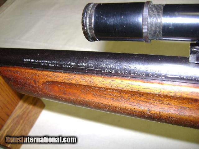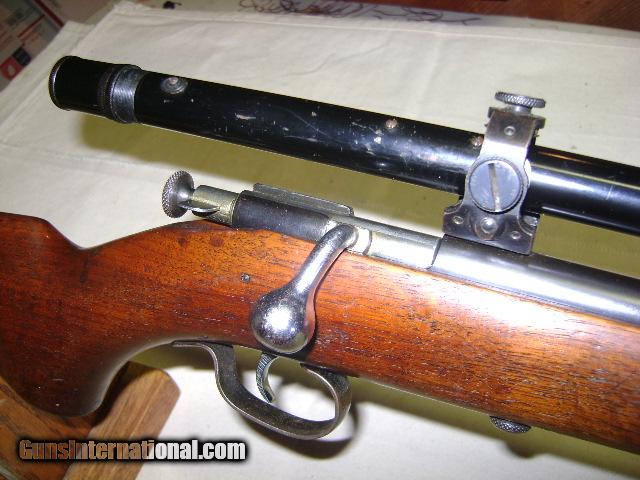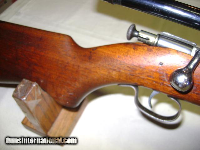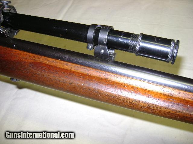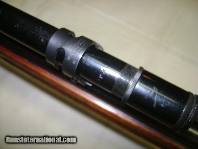 Description: Mfg 1937-1939 Only 2240 Made, 27" Barrel, No provisions for sights, Comes with Winchester 5-A Scope, Clear optics, 85% Barrel blue, Trigger gaurd shows wear, Wood shows handling marks, nothing Bad, Good Bore, Buyer pays 45.00 shipping Pa residents add 6% sales tax SOLD Curio/Relic: Yes |