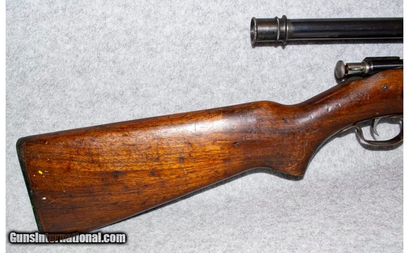 Description: Very unusual Winchester model 67 with British proofs and stamps and original Winchester factory scope. Rifle is in decent condition for its age with a 27" barrel, no heavy rust or pitting or marks and scratches. The original butt plate is missing the bottom piece. Overall and very scarce set up in decent shape. .22 Short/Long/Long Rifle SOLD Barrels: 27 Weight: 7 lbs Item Location: Lone Tree, CO |