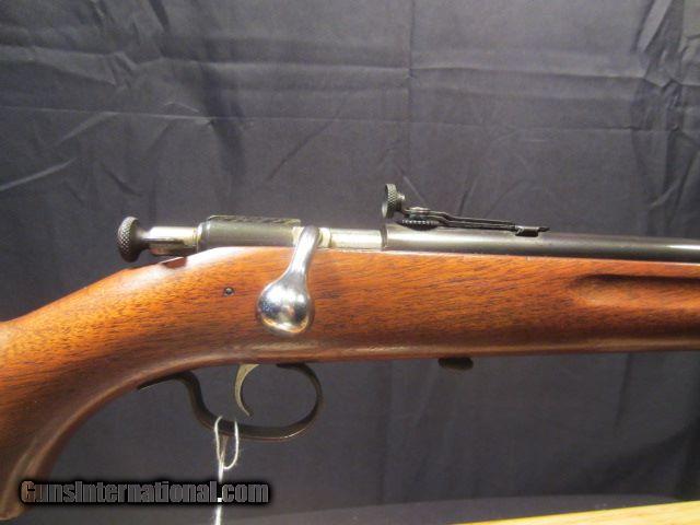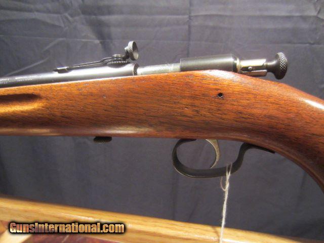 Description: WINCHESTER BOLT ACTION SINGLE SHOT 22 CALIBER MODEL 68 PRE WAR WITH ORIGINAL FACTORY TARGET TYPE SIGHTS. BORE LIKE NEW, WOOD HAS FACTORY ORIGINAL FINISH, BLUE IS FACTORY AND 95% REMAINS. MECHANICS PERFECT. NICE COLLECTIBLE FROM PRE WORLD WAR 2. NEED MORE INFORMATION ALWAYS BEST TO CALL 716-941-3946 SOLD Curio/Relic: Yes |