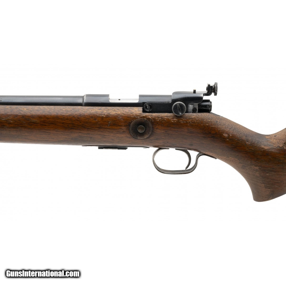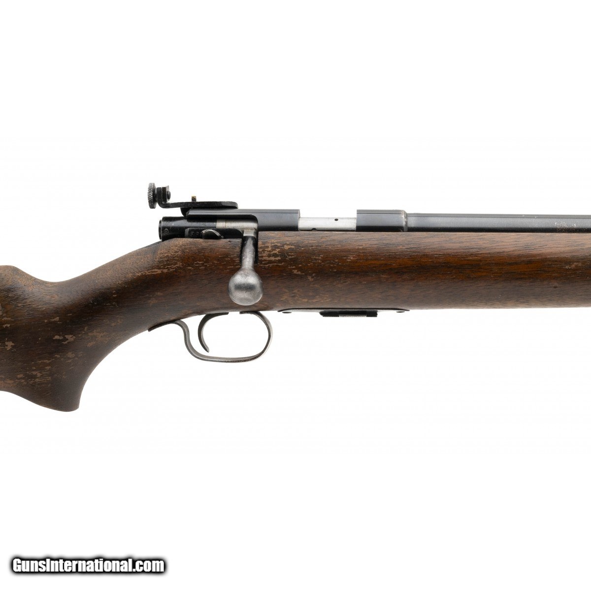 SN: None. Made circa 1950's. .22 S,L,LR with a 25"" barrel. Bore is in excellent condition. Pre 64 Bolt action rifle with peep sight. Overall condition is good with worn stock. Consignment.