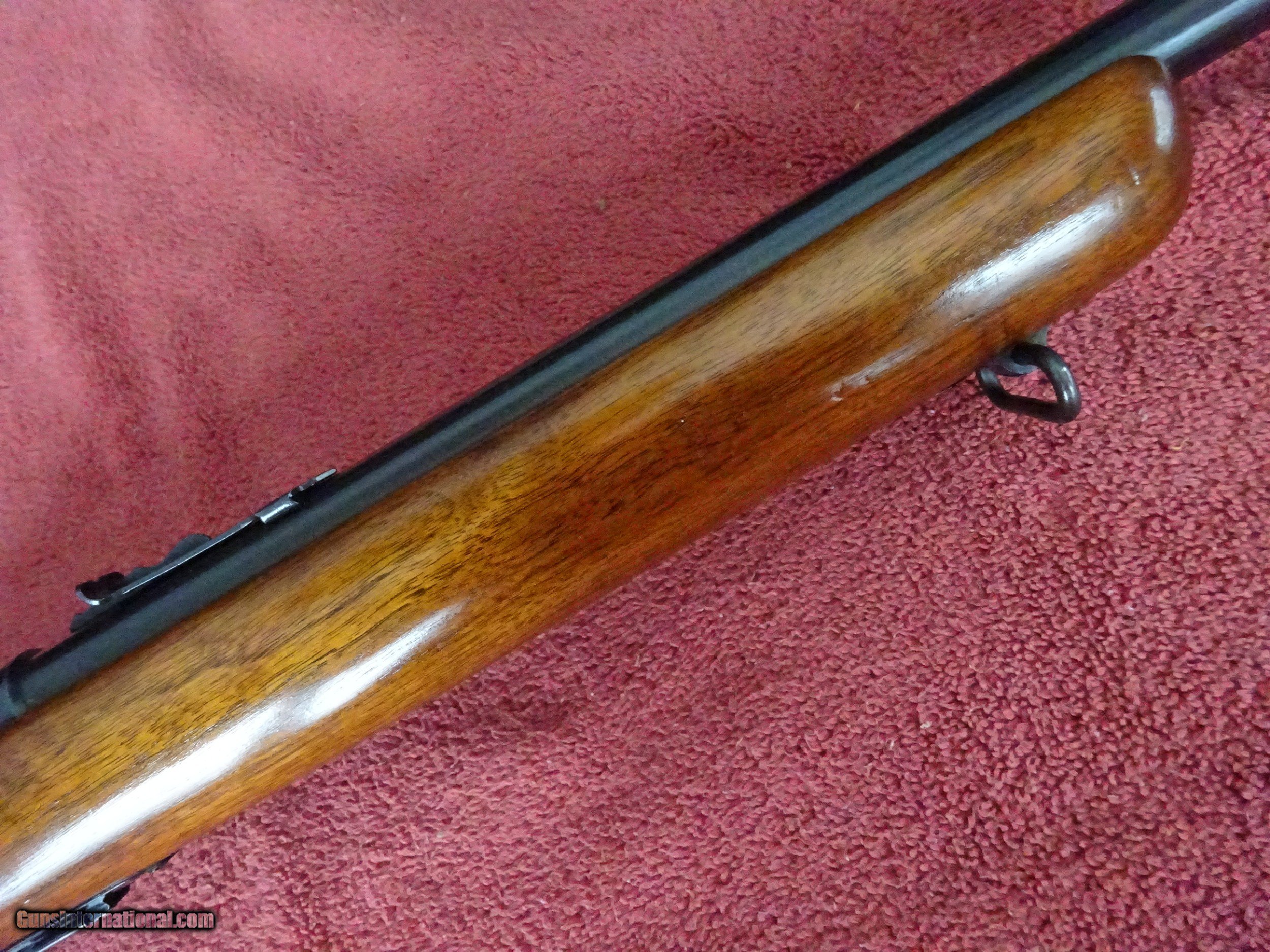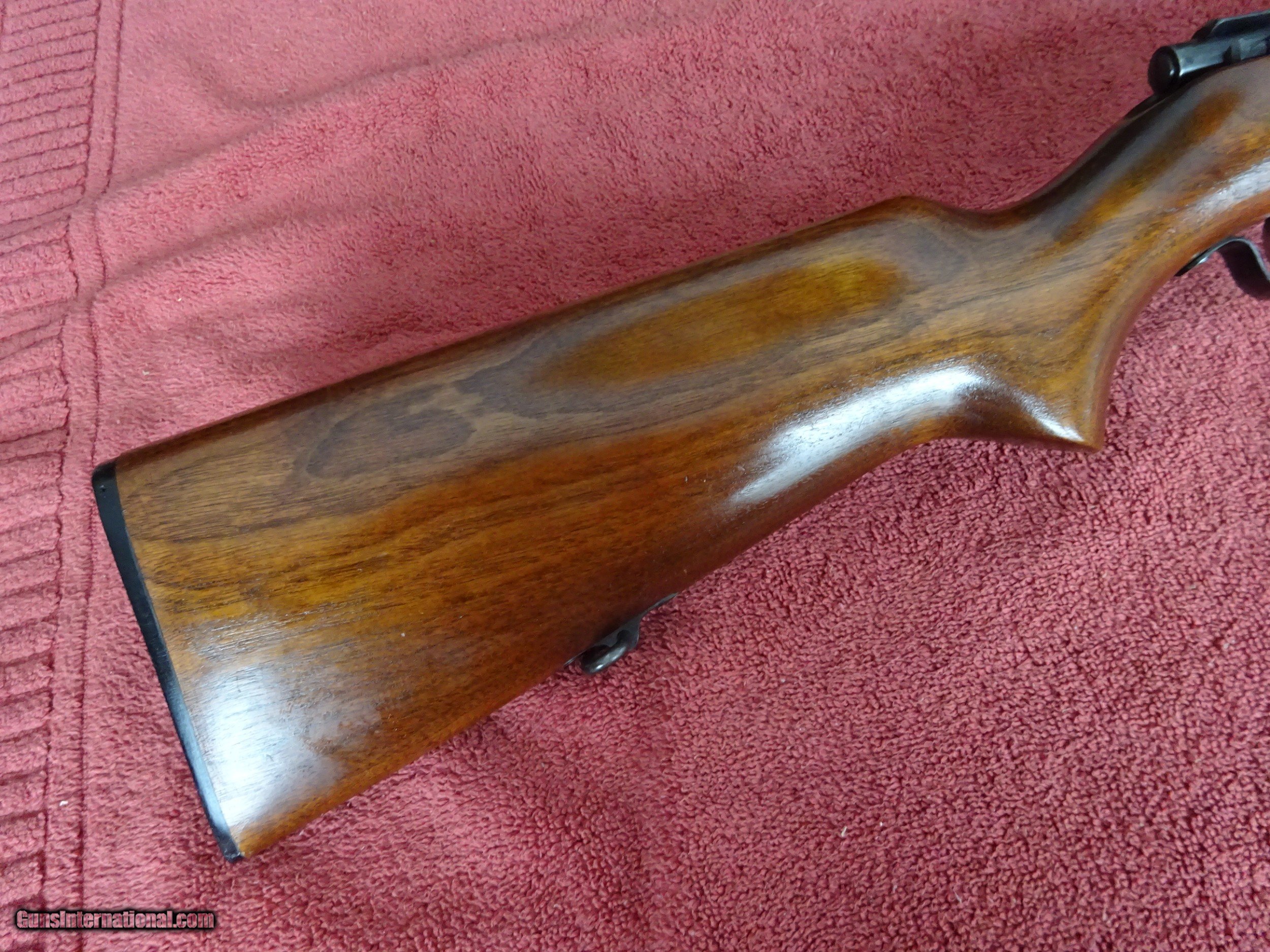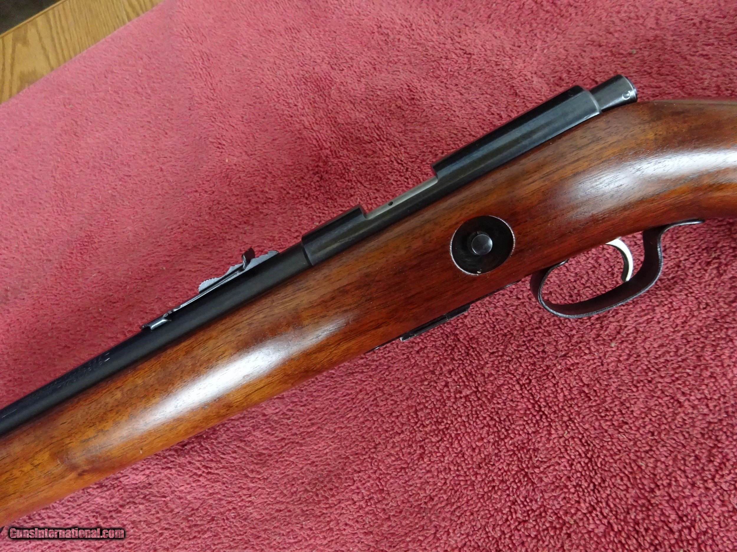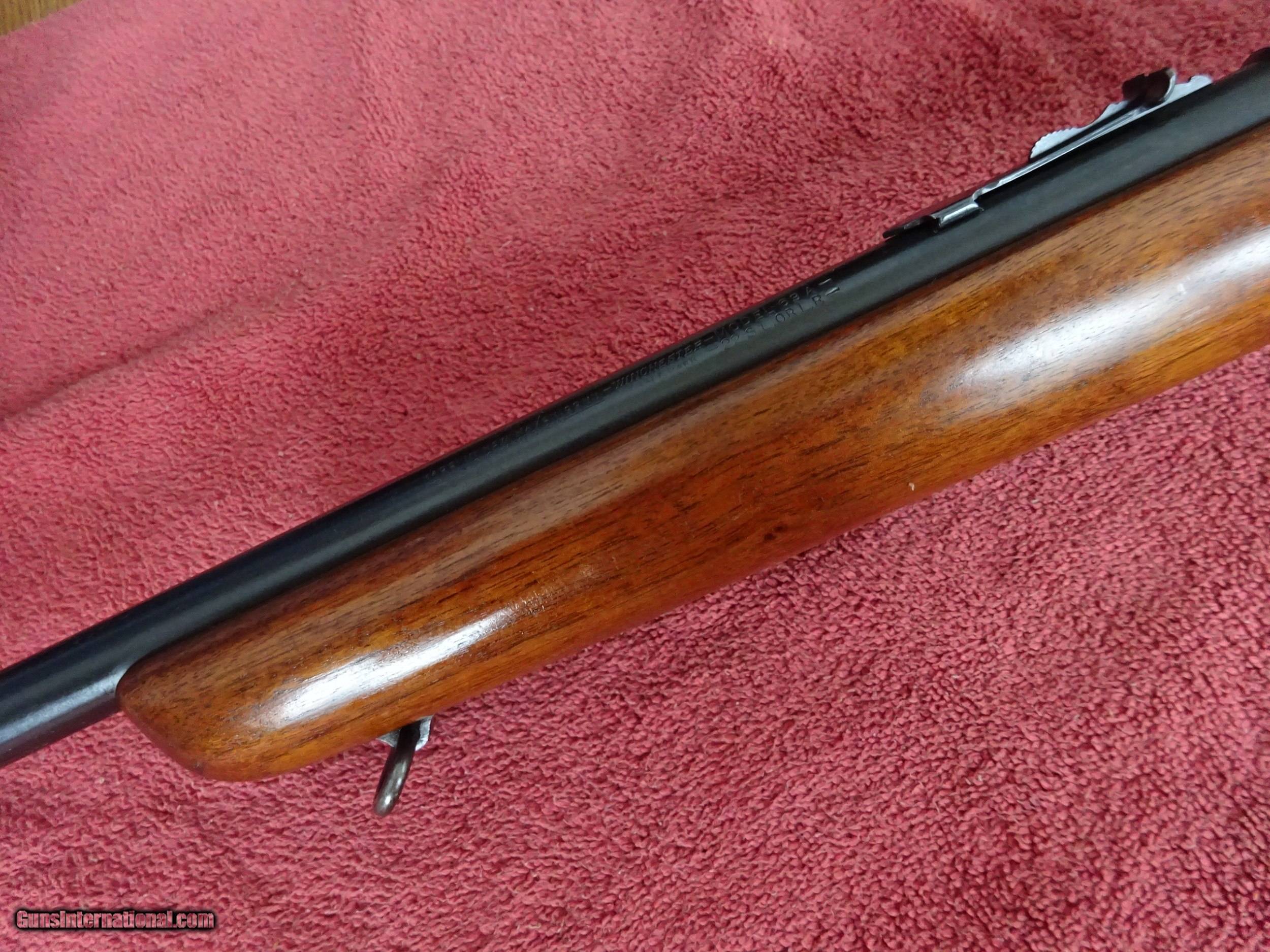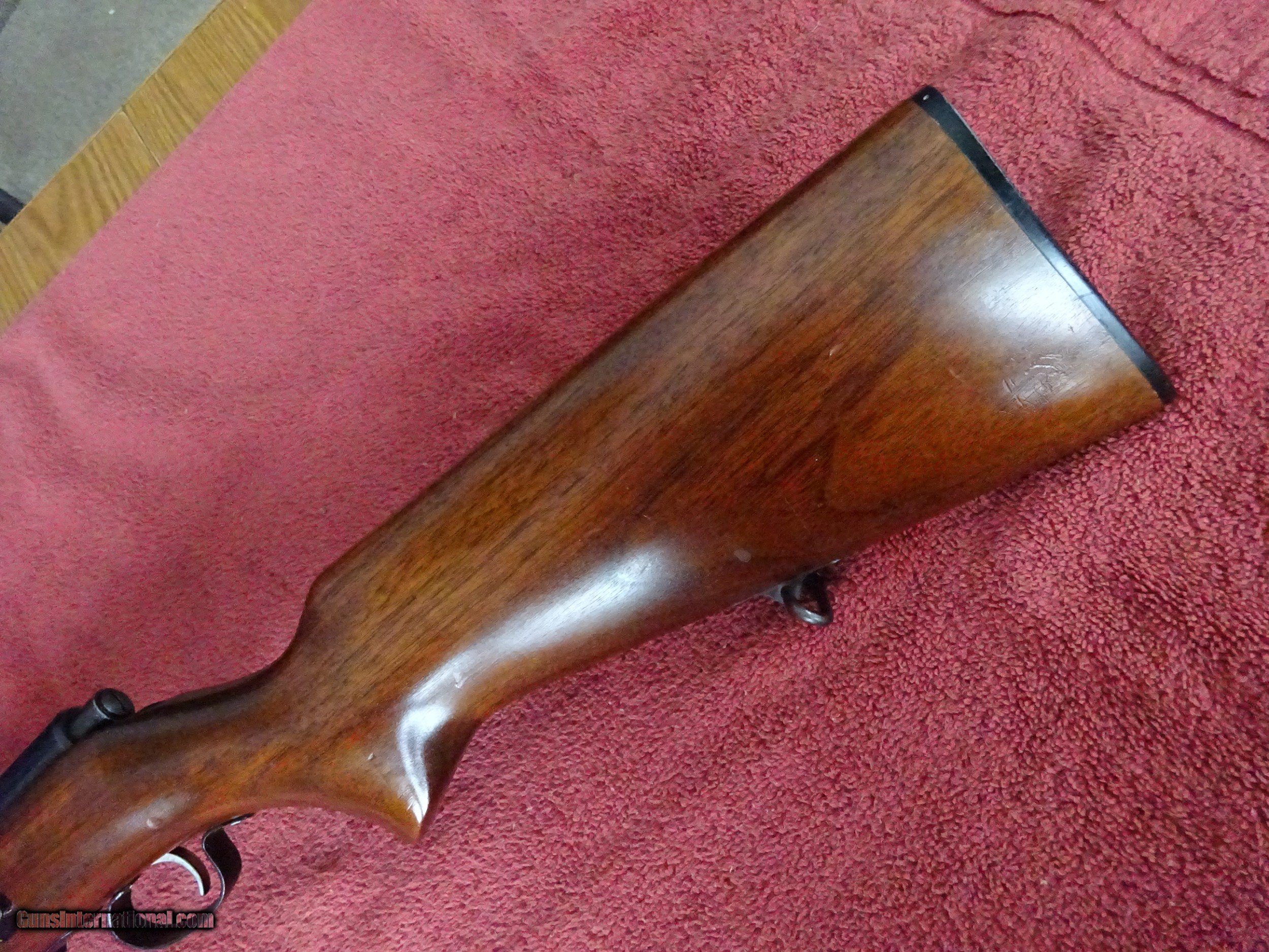 Description: WINCHESTER MODEL 69-A, 22 S. L. OR L.R., 25" BARREL. MIRROR PERFECT BORE, 100% BLUE, STANDARD OPEN SIGHTS, 5 SHOT CLIP. BLUED BOLT HANDLE AND TRIGGERGUARD. PISTOL GRIP STOCK, NEAR-PERFECT WOOD FINISH WITH ONLY VERY MINOR HANDLING MARKS, PERFECT WINCHESTER MARKED BUTTPLATE. HARD TO FIND A NICER EXAMPLE. MADE 1935-1963, 100% ORIGINAL CONDITION. $575.00 + $50.00 Insured shipping to an FFL address. See all Pats gun listings on this site! We also have hundreds of pieces of ORIGINAL gun company advertising & memorabilia available for sale on our site SPORTINGCOLLECTIBLES. We have no reprints or reproductions. Email for more information. SOLD Curio/Relic: Yes |