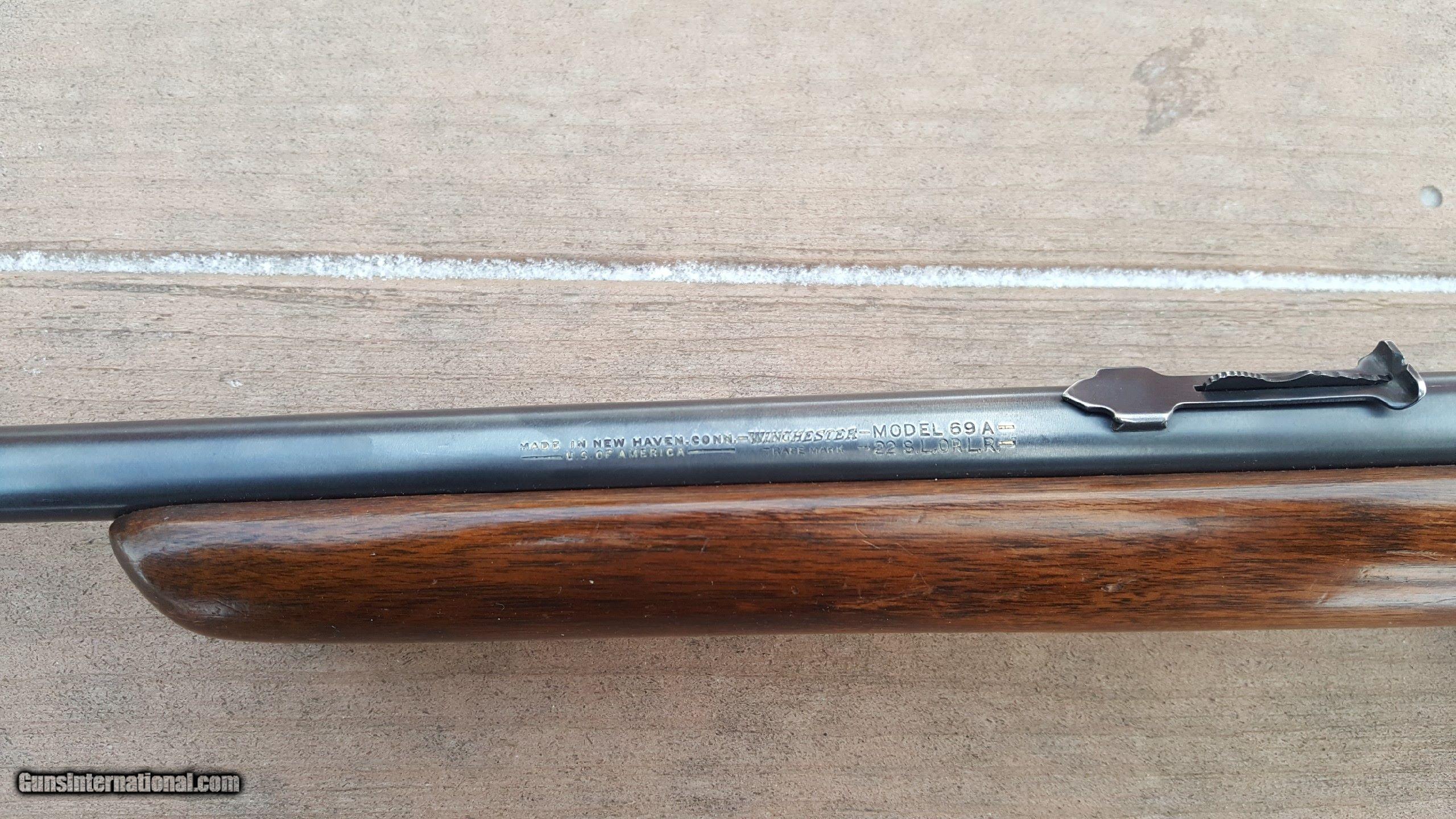 Description: Winchester Model 69A 22 Rim Fire Caliber ?100% original varnish and wood with factory Winchester Clip. Wood condition has some handling marks. Factory blue at 95%. The bore is mint. ?RARE Factory Serial Number on left side of receiver #101897 For further information it is best to call our office at 716-941-3946 SOLD Curio/Relic: Yes |