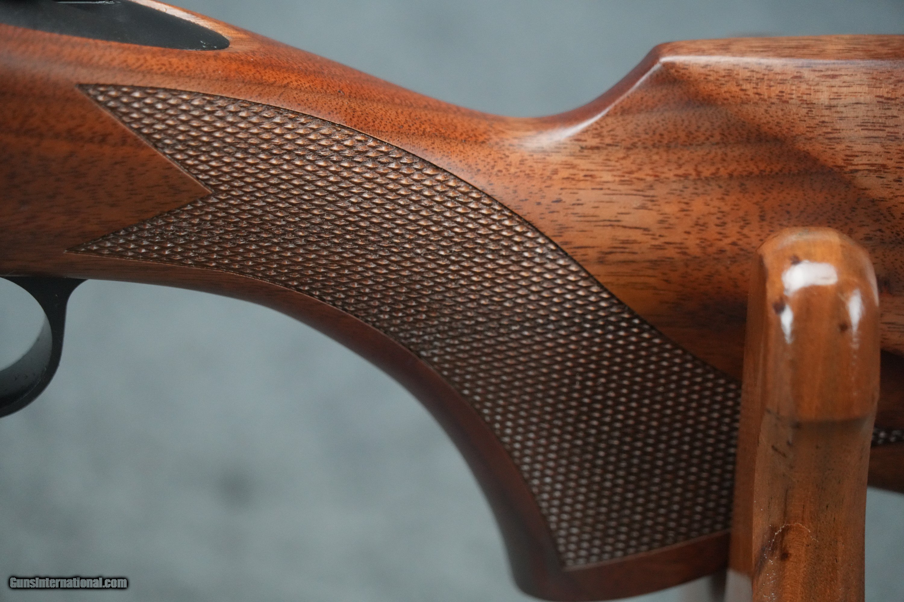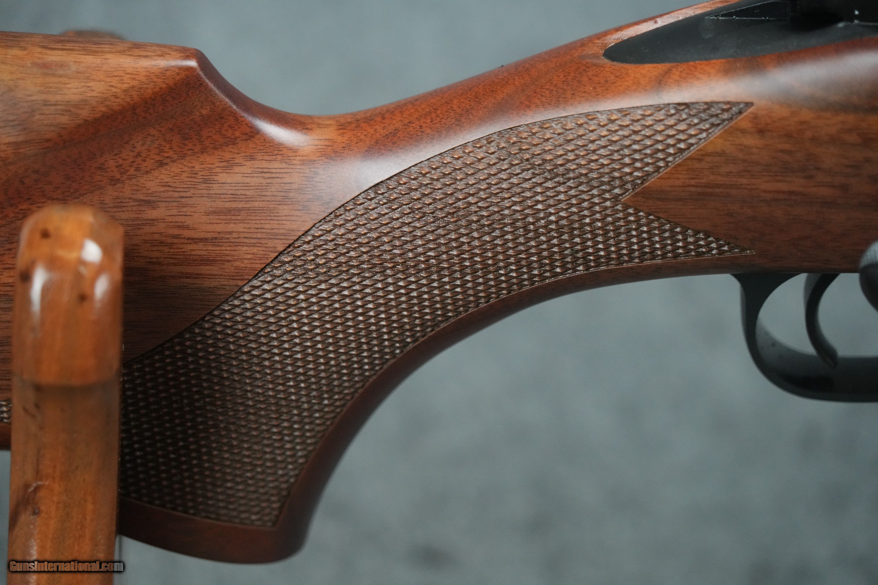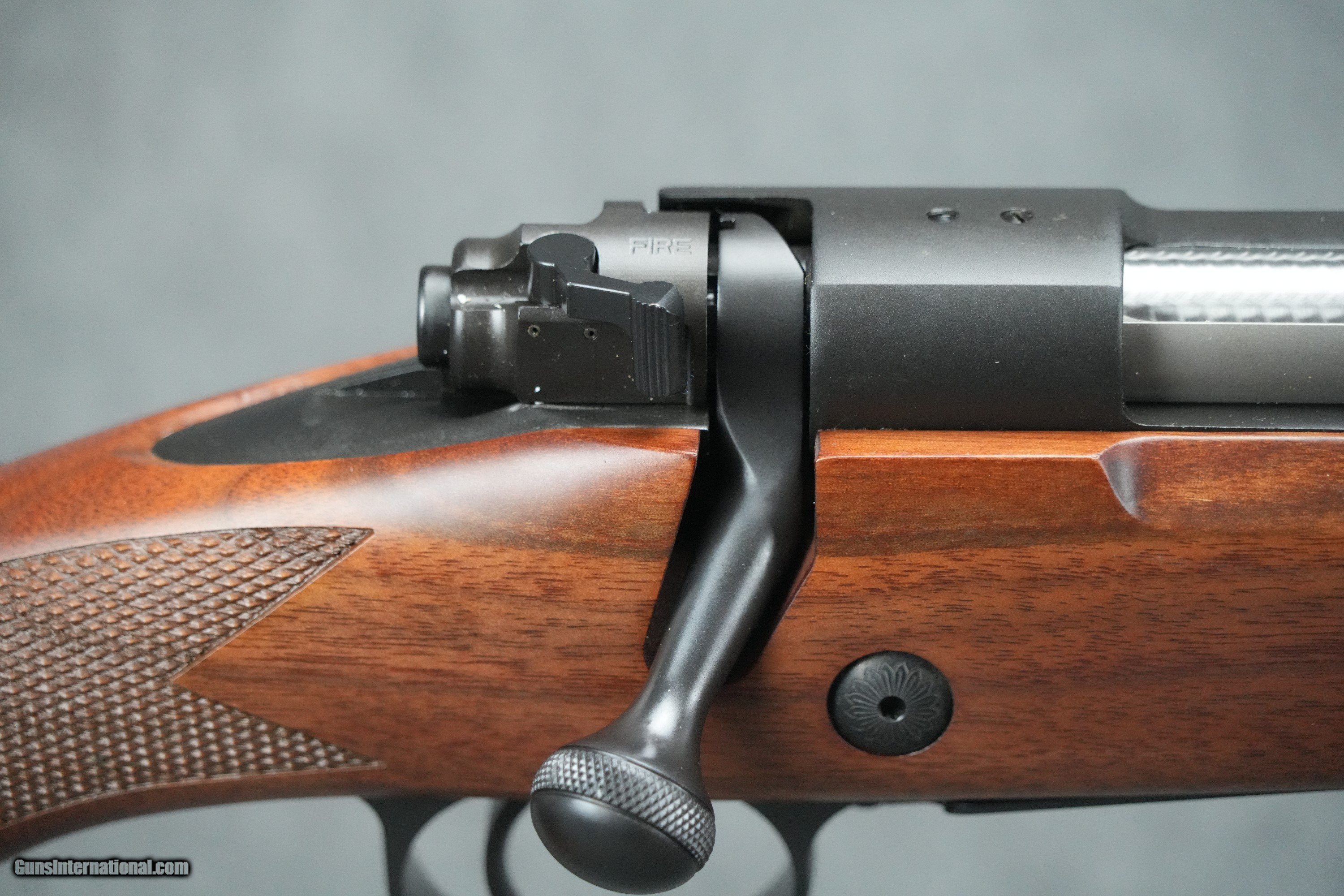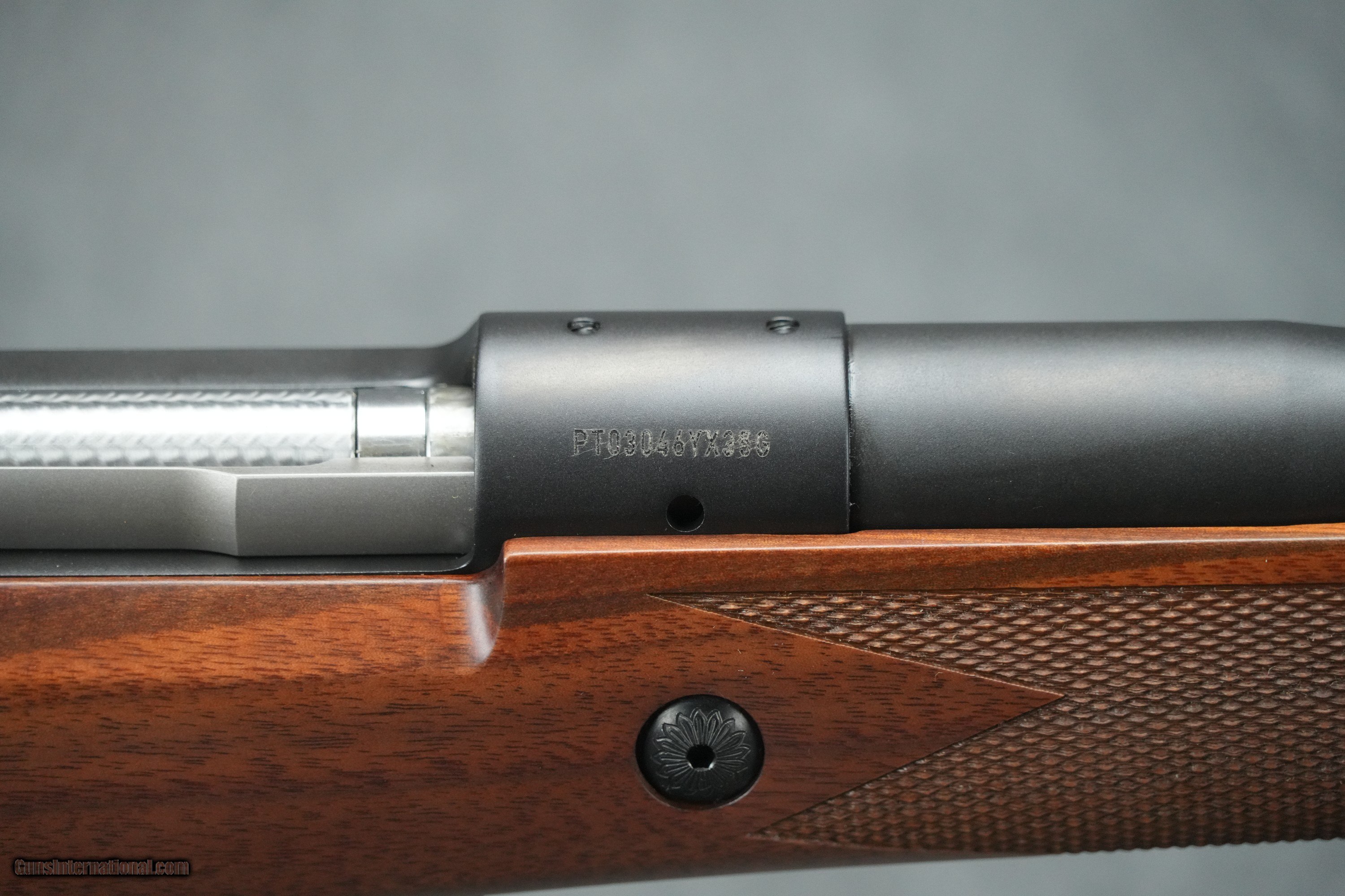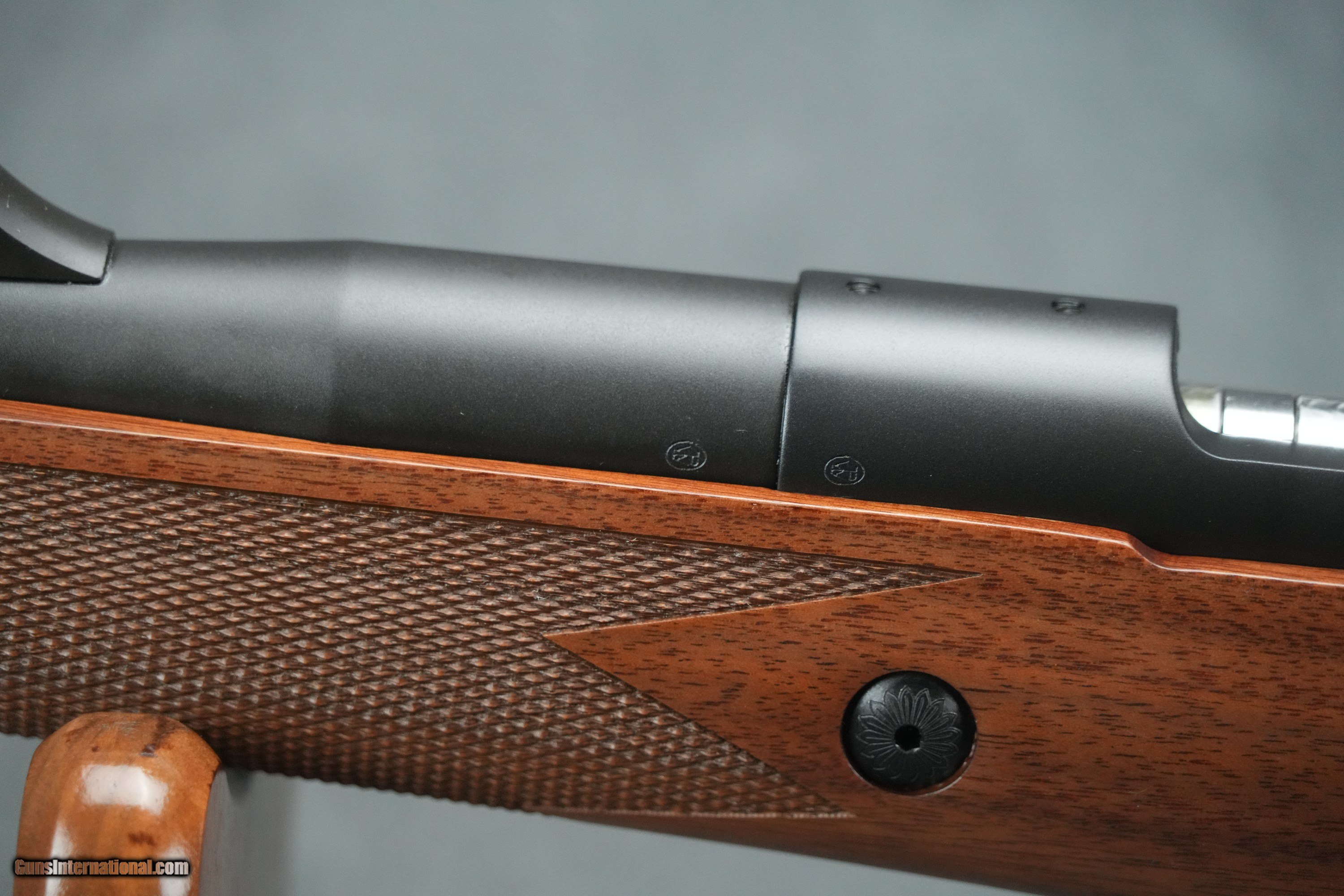 Description: Revered as the bolt-action rifle for dangerous game. Built with a forged steel receiver, front and rear bedded double recoil lugs, dual decorative steel crossbolts, iron sights with hooded front sight, satin finish checkered walnut stock and barrel mounted sling swivel. Perfect for your once-in-a-lifetime hunt. The Model 70™ Safari Express in a matte blued finish is the perfect choice for your once-in-a-lifetime hunt because it’s built to handle the heavy cartridges necessary to take dangerous game. Important details like the Pre-’64 type claw extractor, Pachmayr® Decelerator® recoil pad, barrel band front swivel base, hooded-blade front sight and express-style rear sight make the Safari Express ideal for any African hunt. The dual recoil lugs and two steel stock reinforcing crossbolts handle the punishment from heavy magnum loads. The time-tested Three-Position Safety has been a hallmark of the Model 70 for decades. The secure hex socket action screws won’t snag on clothing, and the one-piece steel trigger guard helps maintain rigidity and provides added strength. The handsome cheekpiece positions your eye instantly and firmly on target. Flip open the flush-mounted, hinged steel magazine floorplate for fast and easy unloading Satin finish grade I Walnut stock with cut checkering and deluxe cheekpiece places your eye in perfect alignment with open sights or a scope One-piece bottom metal with steel floorplate adds rigidity for better accuracy Matte finished metal surfaces reduce glare Dual decorative steel crossbolts add strength, rigidity and a touch of stylish refinement Forged steel receiver with double integral recoil lugs is bedded front and rear to eliminate shifts in zero for exceptional long-range accuracy Fully adjustable rear sight with hooded brass bead front get you on target quickly Barrel-mounted front sling swivel adds a classic touch Action Length Long Action Caliber 458 Win Mag Barrel Length 24 Overall Length 44 3/4 Length of Pull 13 3/4 Drop at Comb 1/2 Drop at Heel 1/2 Weight 9 lbs 0 oz Magazine Capacity 3 Twist Rate 14 Barrel Finish Matte Stock Finish Satin Wood Grade Grade I Receiver Finish Matte Chamber Finish Polished Barrel Material Steel Barrel Contour Safari Stock Material Black Walnut Recoil Pad Pachmayr Decelerator Pistol Grip Cap None Checkering Cut 20 LPI Sling Swivel Studs Steel Integral Receiver Material Steel Trigger Finish Brushed Polish Bolt Slide Finish Jeweled Magazine Type Hinged Floorplate Trigger Material Stainless Steel Trigger Guard Material Steel Trigger Guard Engraving None Floor Plate Material Steel Drilled and Tapped for Scope Yes SOLD Rifle Caliber: .458 Winchester Magnum Manufacturer: Winchester Model: 70 Safari Express Barrel Length: 24" Barrel Condition: BRAND NEW |