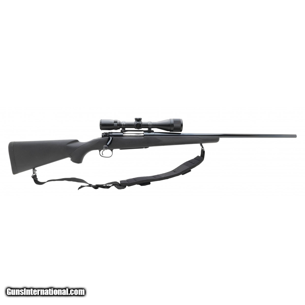 Bolt-action deer rifle with 24"" barrel and synthetic stock. Detachable magazine. Overall excellent condition. Comes with a Bushnell 4-12x scope and sling.