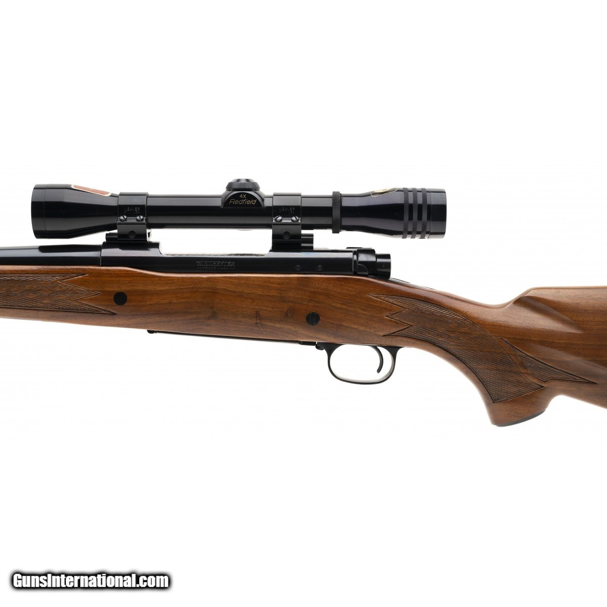 Description: " SN:G929026. Made in 1969, 7mm Rem Mag, with a 24"" barrel. Bore is excellent. Bolt action rifle. Barrel and receiver have 98% original finish. Has checkered wood stock in excellent condition. Comes with Redfield 4x scope, overall in excellent condition. SOLD |