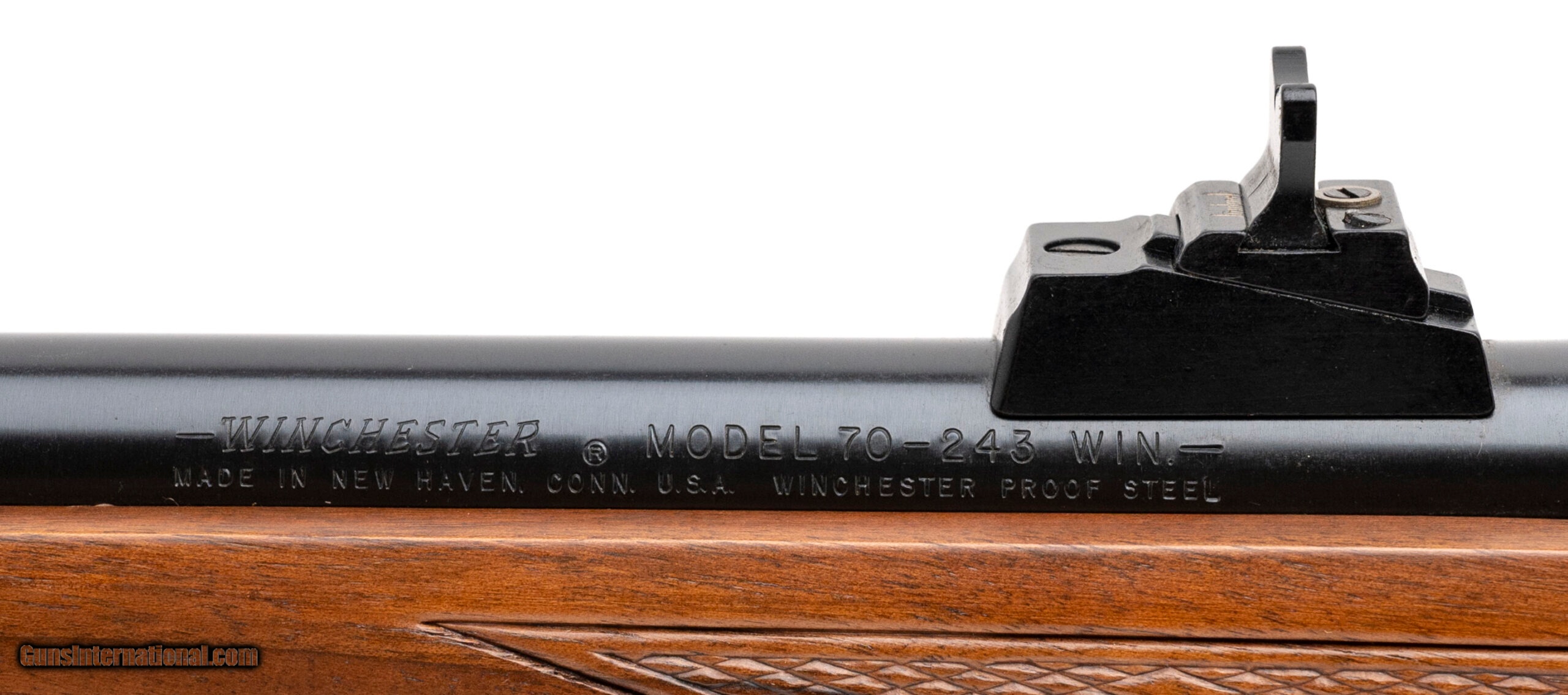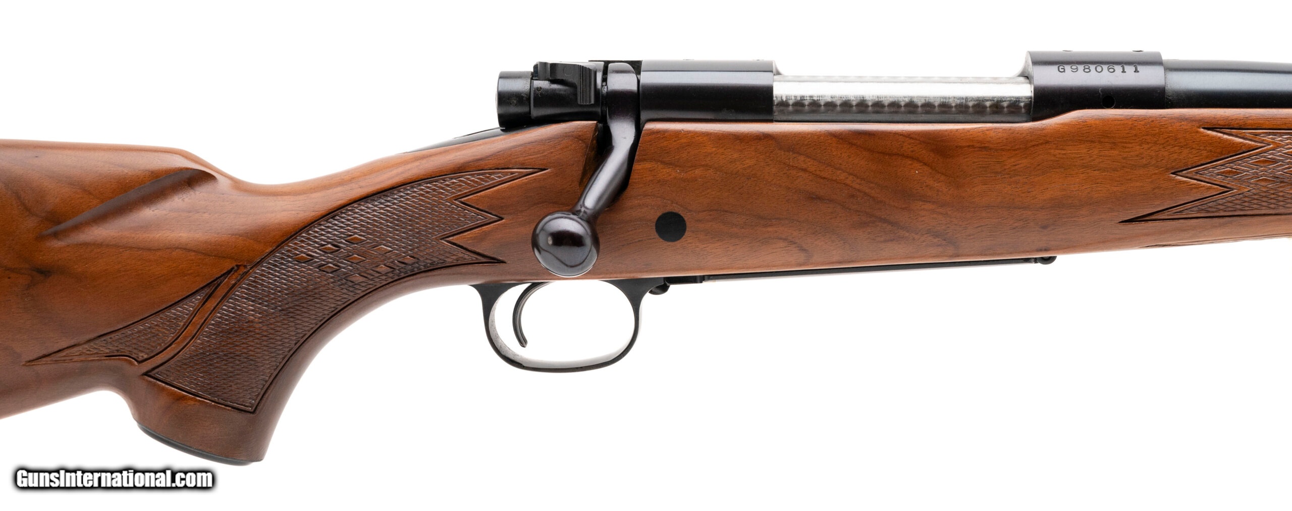 Description: "SN: G980611. Made in 1971, .243 with a 22"" barrel. Deluxe deer rifle with checkered walnut stock, open sights and leather sling. Excellent overall condition. SOLD |