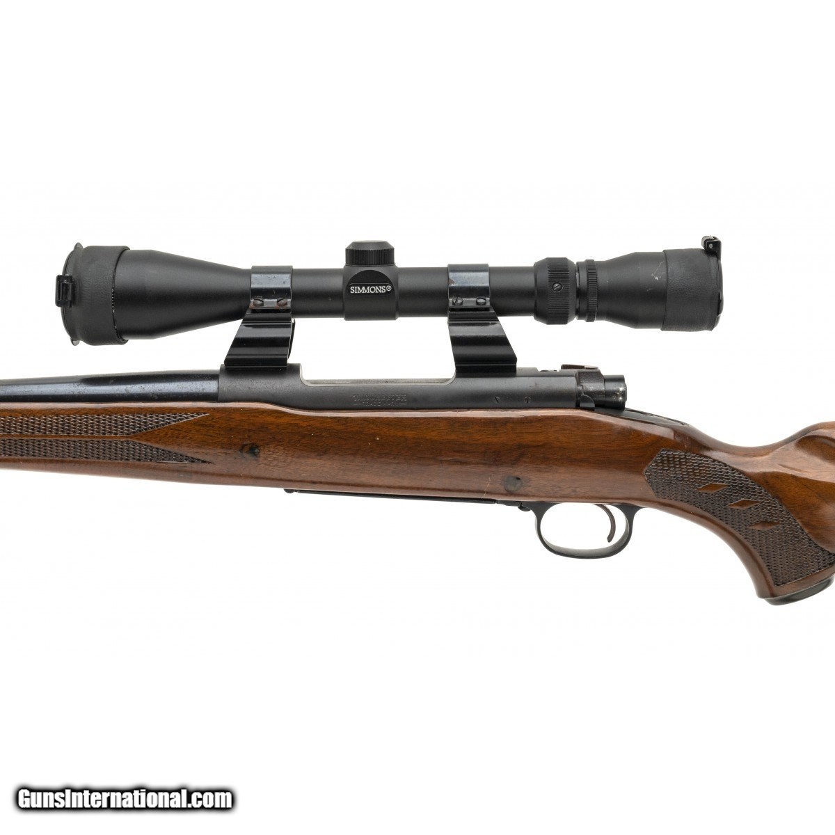 SN: 774832. Classic bolt-action rifle made by Winchester in 1965. 22"" barrel chambered for .30-06. Good overall condition with some surface rust on the receiver and barrel. Magazine floorplate and trigger guard have some finish wear. Bore is bright with strong rifling. Wood is in good condition with some handling marks. Front sling stud hole is partially stripped and the stud spins, but it does not pull out. Includes mounted Simmons 3-9x40 scope and nylon sling.