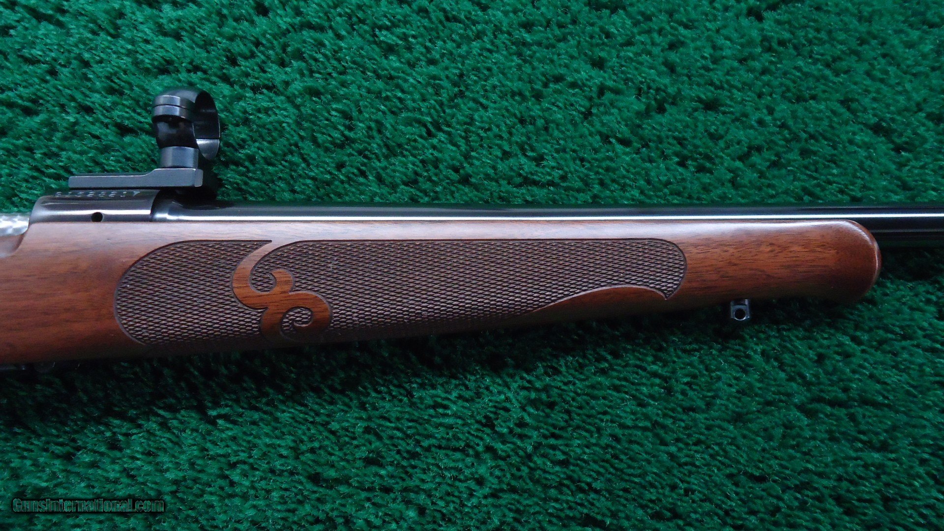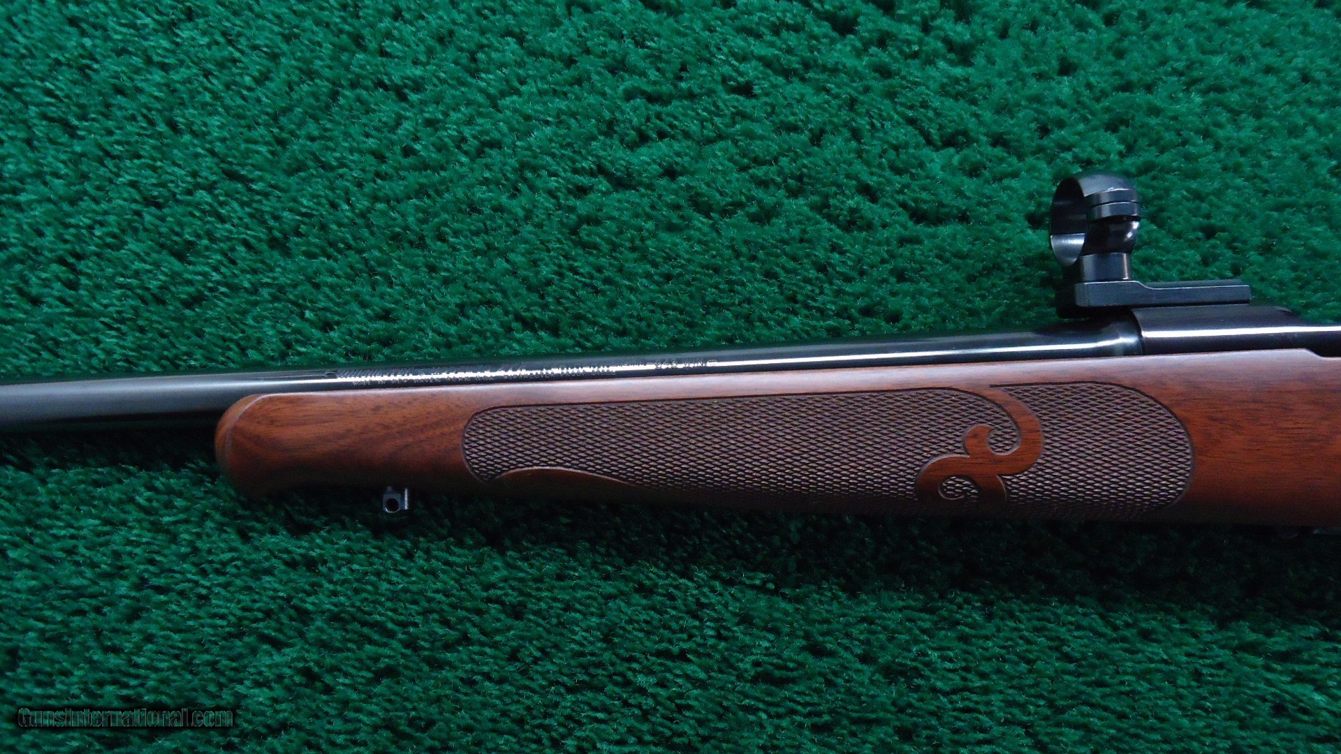 Description: 22 inch round barrel. Excellent bore that is bright and shiny with strong rifling. This rifle was made without sights and includes scope mounting bases with 1 inch scope rings. The numbered to match bolt features a jeweled finish and a knurled handle. Metal surfaces retain about all high polish finish with only very slight handling marks on the trigger guard. Satin finish pistol grip walnut stock is excellent featuring fancy checkering, a Schnabel forend, sling eyes and a red rubber butt pad. This rifle was made in 1981 and remains in near as new condition. Very Nice! Leroy Merz Antique Firearms specializes in antique and vintage Winchesters and other fine American firearms. Since 1965 Mr. Merz has taken part in the world of firearms and has been a contributor to many well known reference books. We have hundreds of additional guns in every price range at our home online. Search for Merz Antiques in google. SOLD Curio/Relic: Yes Rifle Caliber: .243 Winchester |