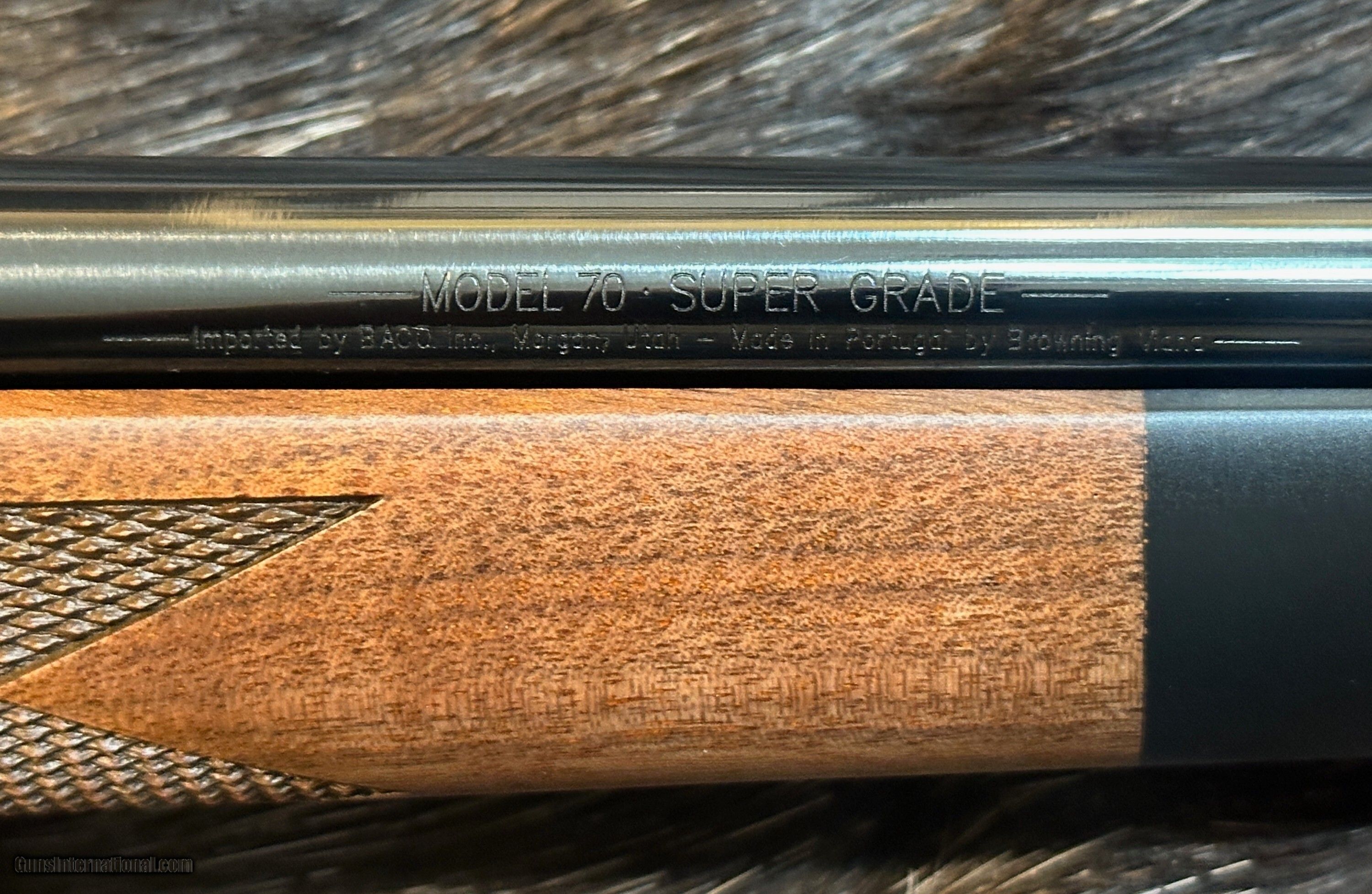 Description: NEW WINCHESTER MODEL 70 SUPER GRADE 300 WINCHESTER MAGNUM RIFLE WITH GOOD WOOD STOCK - LAYAWAY AVAILABLE. UNLIKE OTHER SELLERS, JD OUTFITTERS DOES NOT FALSELY CLAIM TO HAVE “INVENTORY” BUT THEN DROP-SHIPS SOME UNKNOWN AND UNSEEN RIFLE FROM A THIRD-PARTY WAREHOUSE. NOR DOES JD OUTFITTERS USE STOCK OR GENERIC PHOTOS. THE RIFLE YOU SEE IS IN INVENTORY, READY TO SHIP, AND IS THE RIFLE YOU WILL RECEIVE! FREE AFRICAN SAFARI WITH KUCHE SAFARIS (: KUCHE.CO.ZA) INCLUDED WITH THIS RIFLE! SAFARI IS FOR 1-HUNTER / 5-DAYS / 3-ANIMALS (IMPALA, BLESBUCK, WARTHOG). SAFARI IS CUSTOMIZABLE WITH ADDITIONAL DAYS AND ANIMALS AVAILABLE. THE CERTIFICATE IS GOOD FOR 3-YEARS FROM DATE OF PURCHASE AND WILL BE EMAILED TO YOU. NOTE: THE SAFARI IS FREE AND DOES NOT ADD ANY COST TO THE RIFLE. BUY A SCOPE AND RINGS/BASES FROM JD OUTFITTERS AND RECEIVE FREE MOUNTING. JD OUTFITTERS STOCKS LEUPOLD, SWAROVSKI, KAHLES, AND MANY OTHER SCOPES. Features Of This BEAUTIFUL Model 70 SUPER GRADE Rifle Include: