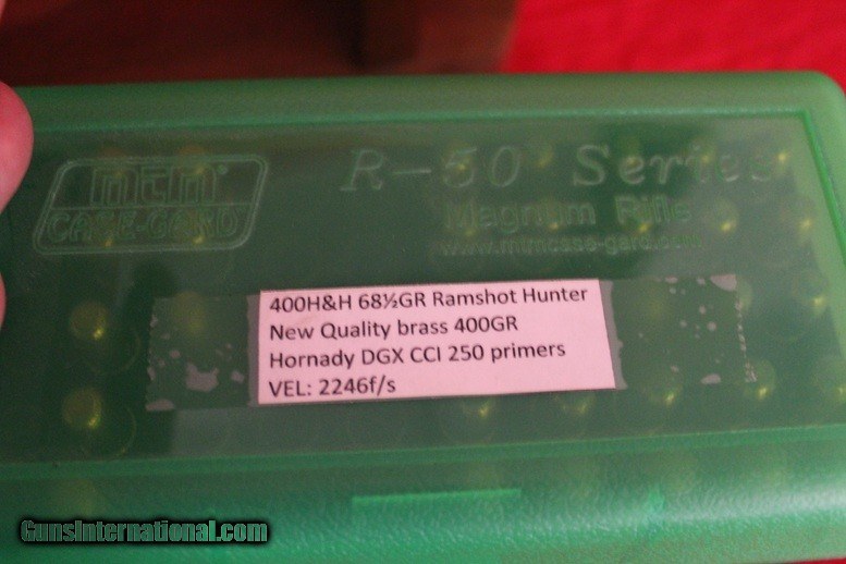 Description: Weaver Rifles Custom 400 H&H. Built on a blueprinted Winchester M70 Classic action SN: G137602. Black Burn drop bottom metal. All metal parts TI Nitrate. Darcy Echols Legend stock. Stock painted Green Lichen with soft touch finish. 13 5/8”LOP over Pachmyer XLT pad. Kreiger .411 #4 contour 14twist barrel finished 23.5”. Proven rifle on several safari’s including a Rhino. Client is finished with Africa and wants to pass this great rifle onto the next generation. $6500.00 00 plus actual UPS Ground Service SOLD |