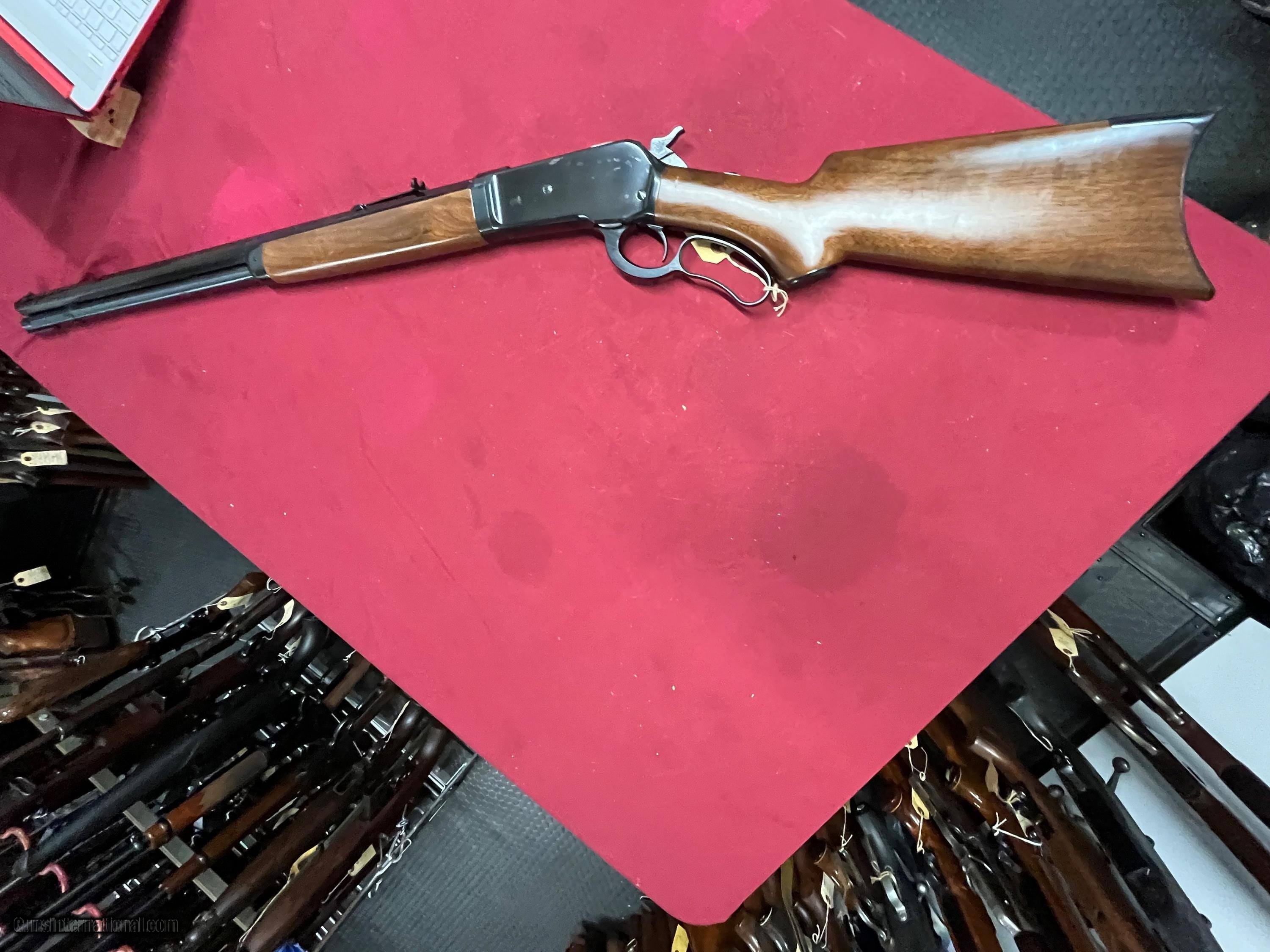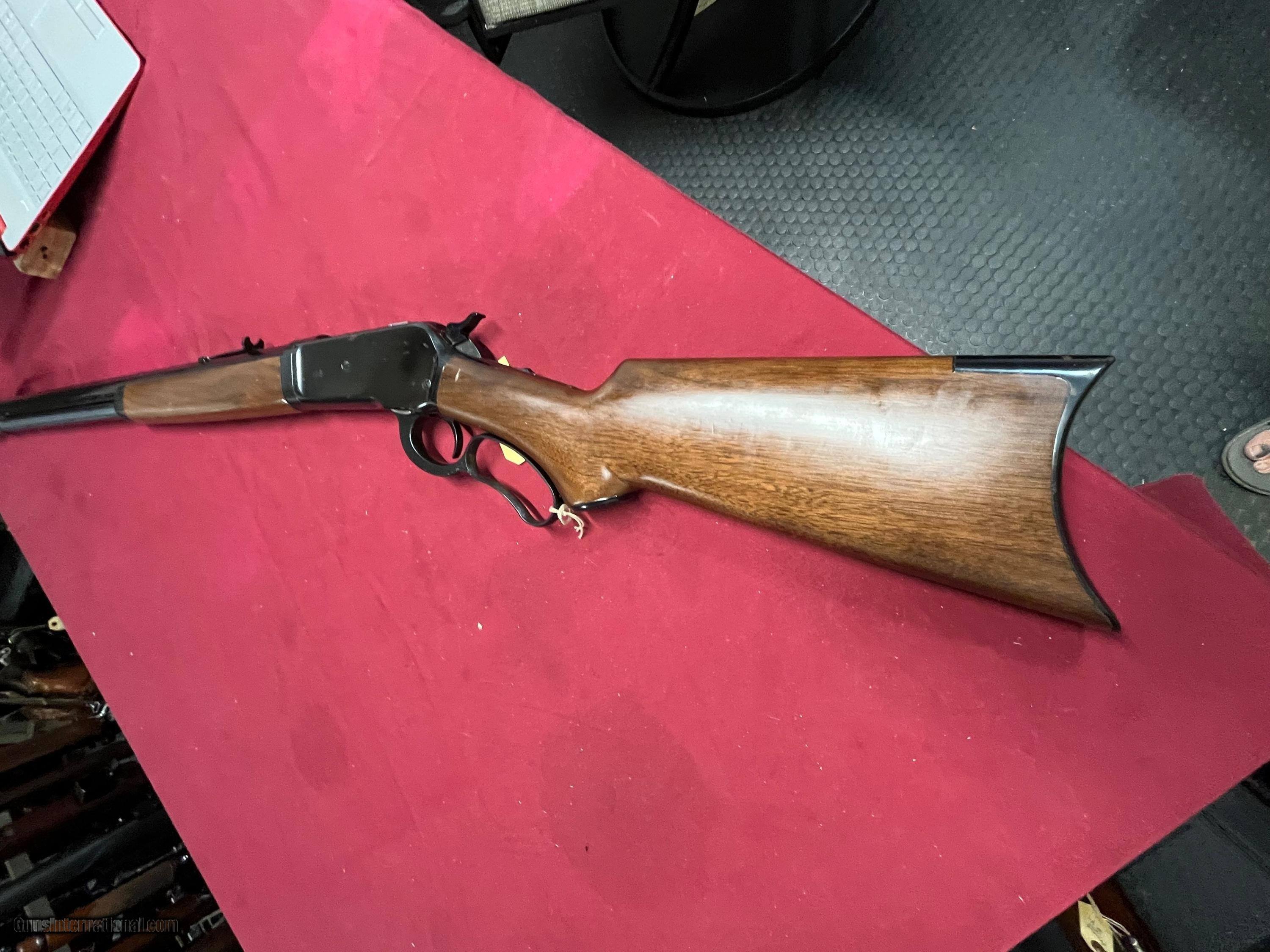 Description: WINCHESTER MODEL 1886 LEVER ACTION TAKEDOEN RIFLE . SER#01461NP343, CALINER 45/70 GOV'T , 26 INCH OCTAGON BARREL WITH A N EXCELLENT BRIGHT BORE. ORIGINAL BLUE FINISH WITH BLOCHEY SPOTS ON THE FINISH. TIGHT ACTION THAT FUNCTIONS FINE. WOOD IS ALL SOLID WITH HANDLING ON THE FOREND. THIS WOULD MADE A FUN HUNTING RIFLE, EASTERN BRANCH FIREARMS ADD 50.00 SHIPPING – HANDGUNS SHIP NEXT DAY AIR ADD 50.00 SHIPPING – LONG GUNS SHIP GROUND OPTIONAL INSURANCE IS AVAILABLE AT 1.25 PER 100.00 Questions e-mail or call Glen at Eastern Branch Firearms 207-215-5021 TERMS – PLEASE READ BEFORE I DO NOT HAVE A LAYAWAY OPTION ( WE ACCEPT CREDIT CARDS ) -- I GET ALOT OF REQUEST FOR TRADES, I WOULD PERFER NOT TO DO TRADES ON MY INTERNET LISTINGS PAYMENT OPTIONS- We accept money orders, cashier’s checks , bank checks. sorry no personal checks. We accept all major credit cards please add 3% to the ’s cash discount price.(Shipping within the state of Florida - Florida Residents must pay sales tax) .Handguns and long guns do need to be shipped separate. PLEASE do not send payment via FED EX . USPS & UPS are fine. Thank you. We include a signed copy of our FFL with each firearm shipped. SAFTY NOTICE- Buyer is solely responsible for determining that a used gun is safe to shoot. The firearms offered have not been test fired but have been given a visual inspection only for purposes. It is a requirement that every used firearm is inspected by a qualified gunsmith before firing. By , the buyer agrees to hold seller harmless against damages, injury, or death caused by defective merchandise. RETURN POLICY- All firearms come with a 3-day non firing , non messing with ( turning srews ,taking apart,removing parts, scoping. firing, cleaning or messing with in anyway) inspection/return privilege.Inspection is based on a visual review of the gun to confirm the gun is in the condition stated. In the case of a return, buyer pays all shipping charges & if paid for with a credit card buyer absorbs the 3% credit card charges . So please ask questions BEFORE you bid. Thanks for Looking and Good Luck!! U.S. sales only, no exports…this includes antiques. I will ship to third party for exporting SOLD |