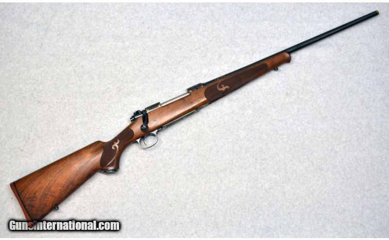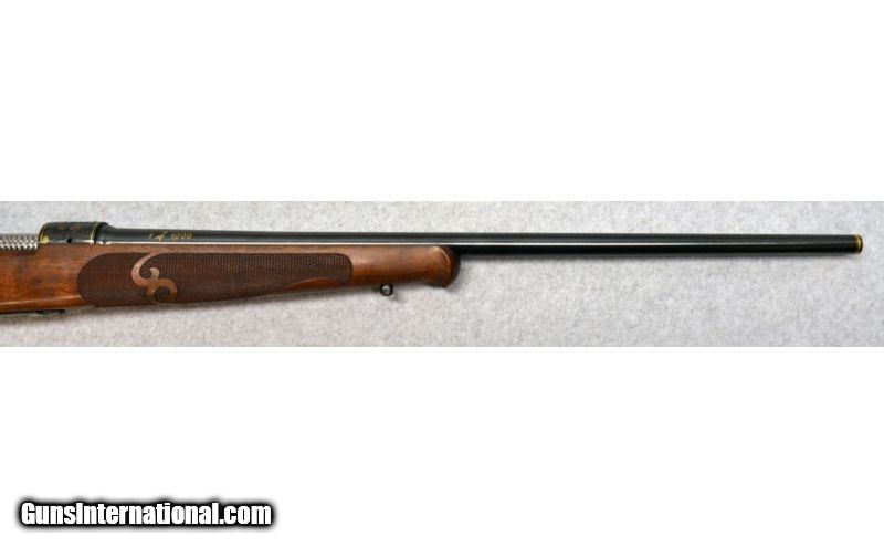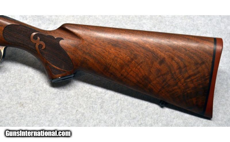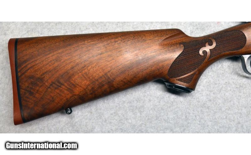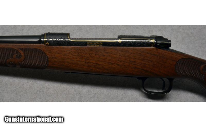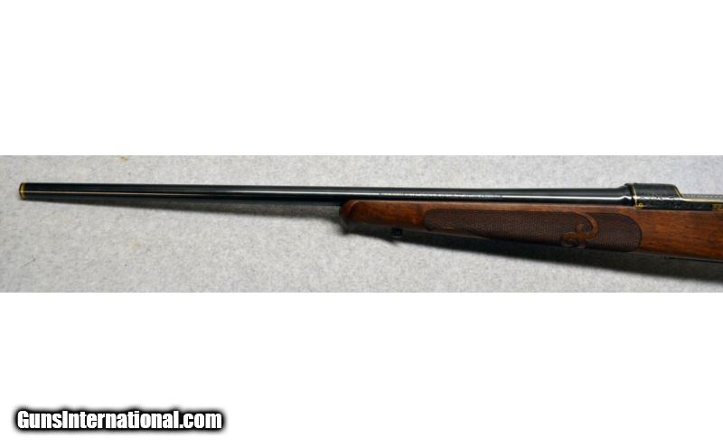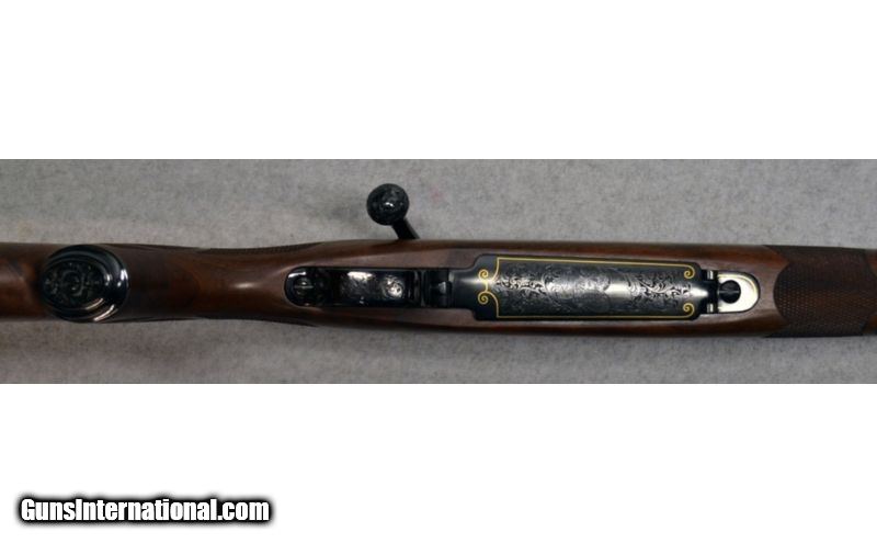 Description: This "1 of 1000" Winchester model 70 Featherweight Ultra Grade has detailed leaf engraved scrolling with gold filigree. The stock is of deluxe beautiful grained French walnut, checkered on the fore end and grip. A jeweled bolt also has detailed scrolling. SOLD Caliber Info: .270 Win. Metal Condition: Excellent Wood Condition: Excellent Bore Condition: Excellent Barrels: 22 Triggers: Single Stock: French walnut with textured grip Stock Dimensions: 13.50" LOP Fore End: French walnut textured Butt Pad: Winchester recoil pad Weight: 7.20 lbs Extras: Wooden presentation case, original box with paperwork. Item Location: Grandville, MI |