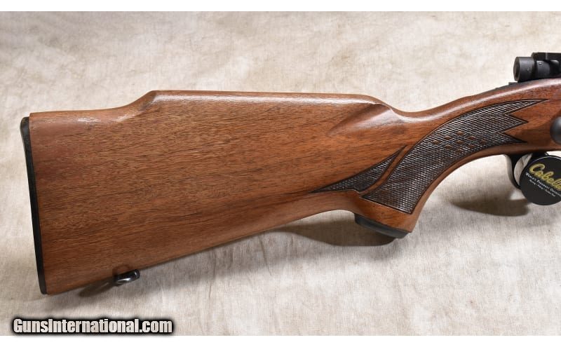 Description: Manufactured in 1967, this "push-feed" Model 70 features a walnut Monte Carlo stock with cheek piece, internal magazine 2ith hinged floor plate, and skip line checkering. The rifle doesn't appear to have been hard and there is a lot of shooting left in it. The metal is in excellent condition, and the wood is undamaged. The only defect appears to be a bit of finish flaked off of the butt stock. .270 Winchester SOLD Curio/Relic: Yes Chambers: 4 rounds Metal Condition: Excellent. Wood Condition: Very good. Bore Condition: Shiny and bright with good rifling. Barrels: 22 inches Triggers: Factory trigger Stock Dimensions: LOP: 13-1/2 inches Butt Pad: Black plate. Sights: "Bead and notch ""iron"" sights, drilled and tapped for scope Item Location: Rogers |