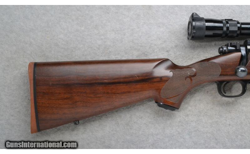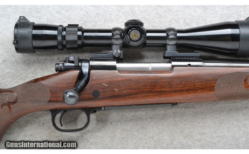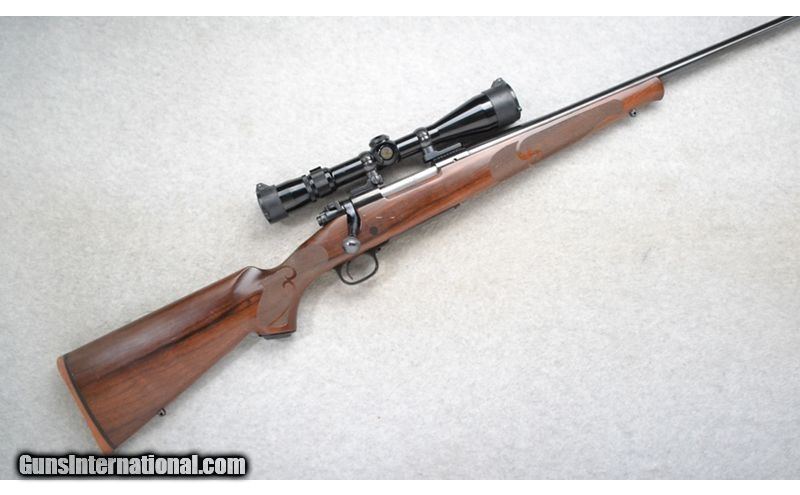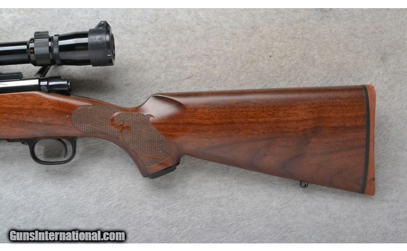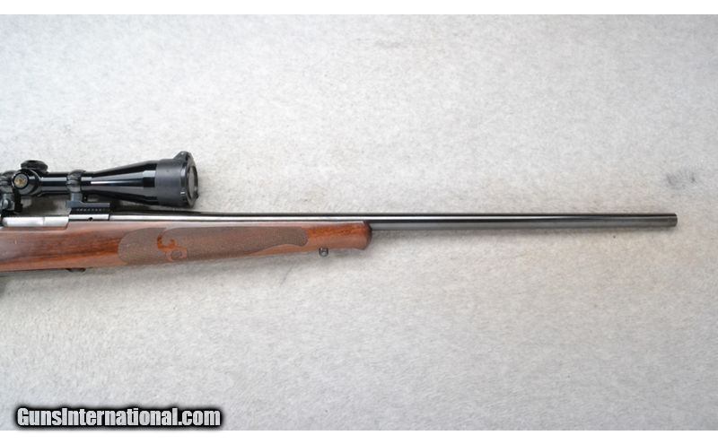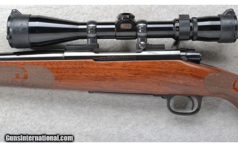 Description: This Winchester Model 70 is a right hand bolt action rifle in .270 WSM Cal. It has a 24 inch barrel. It is outfitted with a Nikon Scope. No iron sights. The butt stock is a checkered grip walnut pistol grip with a black cap. The forearm is a checkered grip walnut schnabel style. It has a jeweled bolt and checkered bolt handle. .270 WSM SOLD Chambers: Internal magazine with a hinged floorplate. Metal Condition: Excellent. Wood Condition: Good. Has handling marks. Bore Condition: Excellent. Barrels: 24 inch. Stock Dimensions: LOP 13 1/2 inches. Fore End: Checkered grip walnut schnabel style. Butt Pad: Winchester red rubber pad. Weight: 8 lb. 4 oz. Sights: Nikon 3-9x40 Scope. No iron sights. Item Location: Richfield, WI |