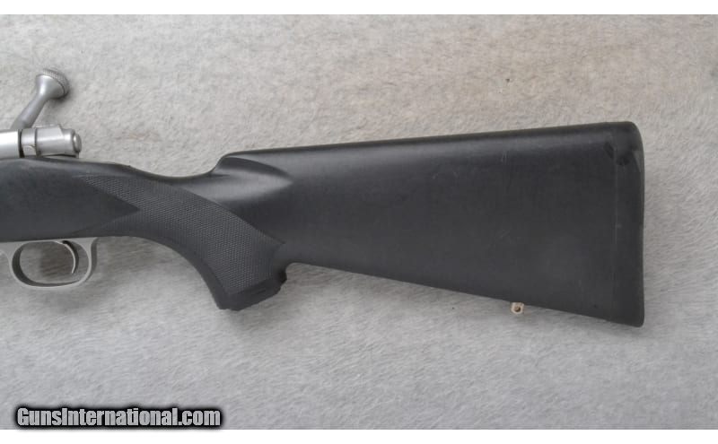 Description: This Winchester Model 70 is a right hand bolt action rifle in .270 WSM Cal. It has a 24 inch barrel. It is drilled and tapped for a scope. No iron sights. The buttstock is a checkered grip black polymer pistol grip. The forearm is a checkered grip black polymer. It has a jeweled bolt and checkered bolt handle. .270 Winchester SOLD Chambers: Internal magazine with a hinged floorplate. Metal Condition: Very Good. Minor freckling on the floorplate. Bore Condition: Excellent. Barrels: 24 inch stainless steel. Stock Dimensions: LOP 13 5/8 inches. Fore End: Checkered grip black polymer. Butt Pad: Winchester black rubber pad. Weight: 7 Lb. 3 Oz. Sights: Drilled and tapped for a scope mount. No iron sights. Item Location: Richfield, WI |