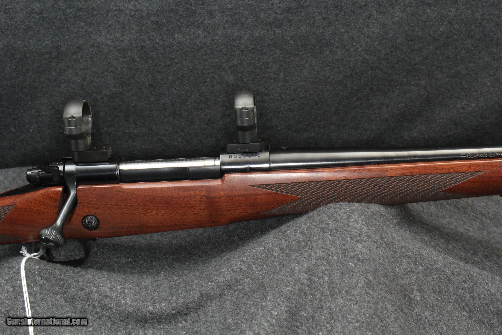 Description: 300 Remington Ultra Mag. Serial number G357XXX, post-64, control feed. 26" barrel. Overall in excellent condition. Wood and metal show very little wear/use. Barrel marked "Classic Super Grade". Bore is excellent. Gun is possibly unfired. Comes with Burris rings and bases. More photos on request. Please contact us for shipping/insurance cost. SOLD Rifle Caliber: .300 Remington Ultra Magnum |