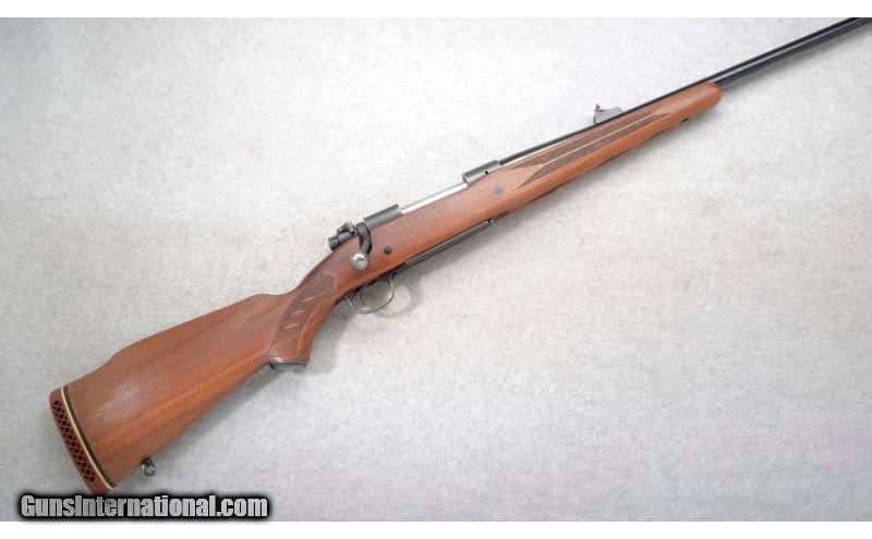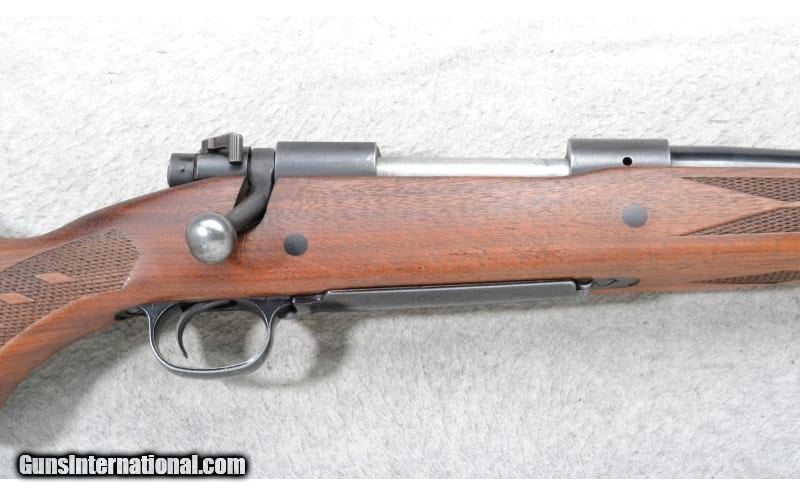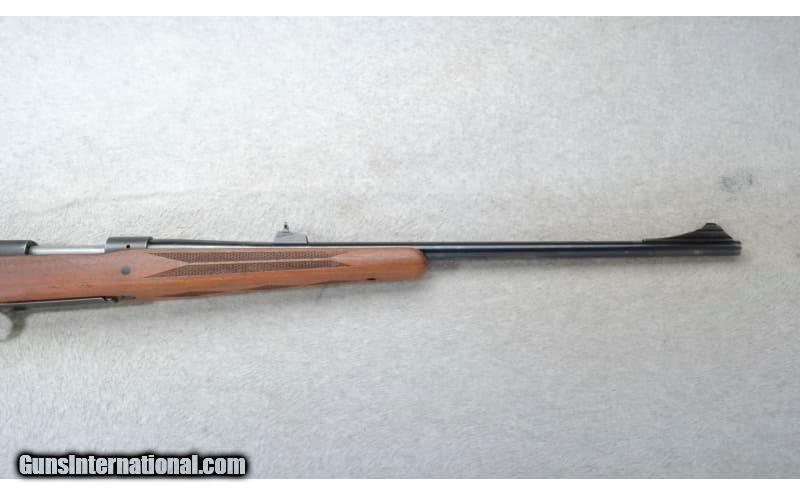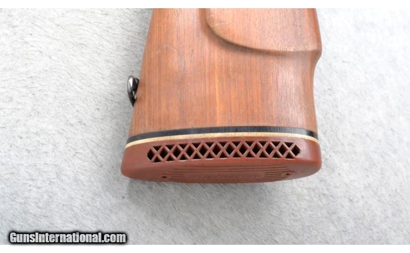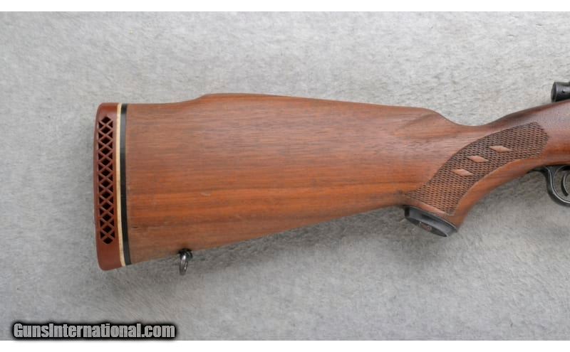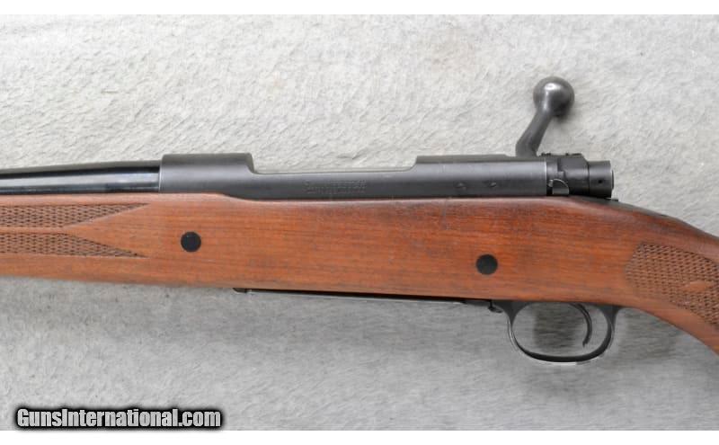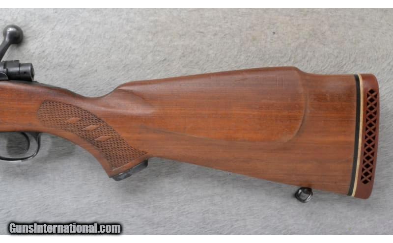 Description: This Winchester Model 70 is a right hand bolt action rifle in .300 Win. Mag. Cal. It has a 24 inch barrel. A raised blade front sight and an adjustable notch middle sight. It is drilled and tapped for a scope mount. The butt stock is a checkered grip walnut pistol grip with a raised cheekpiece and black cap. The forearm is a checkered grip walnut. .300 Winchester Magnum SOLD Chambers: Internal magazine with a hinged floorplate. Metal Condition: Fair. Has blue wear spots and minor handling/use. Wood Condition: Good. Some light handling/use marks. Bore Condition: Very Good. Barrels: 24 inch. Stock Dimensions: LOP 13 1/2 inches. Fore End: Checkered grip walnut. Butt Pad: Winchester red rubber recoil pad. Weight: 7 Lb. 6 Oz. Sights: Raised blade front. Adjustable notch middle. Drilled and tapped. Item Location: Richfield, WI |