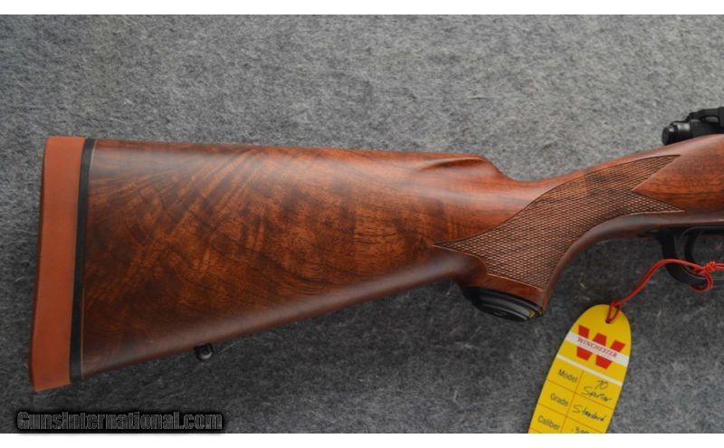 Description: New in box never fired, classic pre 1964 controlled feed and extraction 1 of 750. Cabelas anniversary edition SOLD Caliber Info: .300 WIN MAG Metal Condition: Excellent Wood Condition: Excellent Bore Condition: Bright and sharp Excellent rifling Barrels: 26 Stock: Class III checkered walnut with montecarlo cheek piece Stock Dimensions: LOP 13 1/2 Fore End: Class III checkered walnut Butt Pad: Pachmary decelerator red pad Weight: 8 lbs 2 oz Sights: Rear saddle sight, frong hooded ramp Extras: Box Item Location: Sidney, NE |
