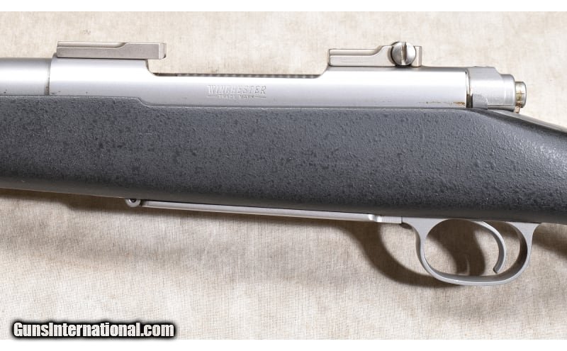 Description: Made for hunting the nasty weather, this stainless steel and black plastic can take it. It has everything the Model 70 is famous for with jeweled bolt, hinged floor plate, claw extractor, and controlled feed. Thinking high country elk? This is the rifle for it. .300 Winchester Magnum SOLD Chambers: 4 rounds Metal Condition: Excellent Wood Condition: Very good Bore Condition: Shiny and bright with good rifling Barrels: 24 inches Triggers: Factory trigger Stock Dimensions: LOP: 13-5/8 inches Butt Pad: Soft rubber pad Weight: 8 LB Sights: Set up for your choice of scope Item Location: Rogers |