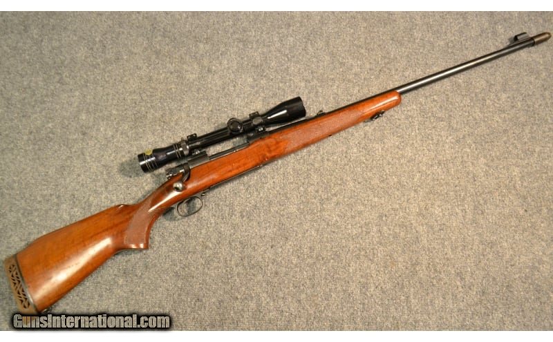 Description: Reliable, durable, no-frills rifle that is in over all great condition and chambered to take any game on the North American continent. .338 Winchester Magnum SOLD Metal Condition: Very Good/Good; wear consistent with use on bolt and receiver internals with light markings on most metal surfaces Wood Condition: Very Good/Good; light handling and usage marks on whole stock Bore Condition: Excellent Barrels: 25" w/ Herter's Brake Stock Dimensions: 12.75" LOP Fore End: Textured Wood Butt Pad: Rubber Weight: 9 LBS Sights: Hooded Blade w/ Dot Front; Flip-up Adjustable Rear; Redfield 3-9x Widefield Item Location: Thornton, CO |