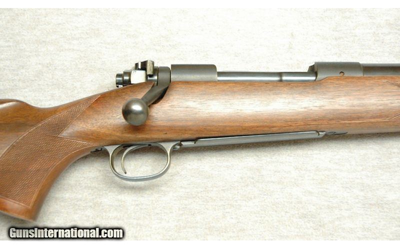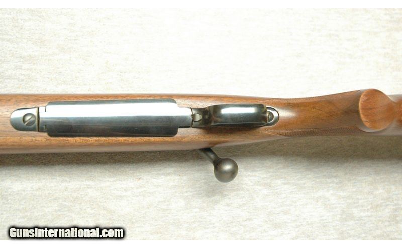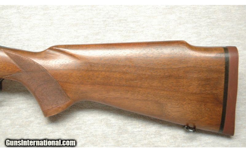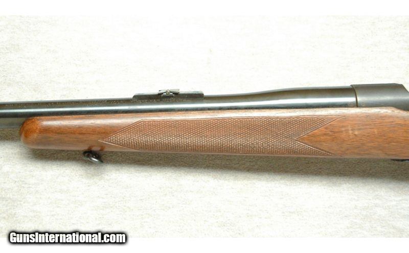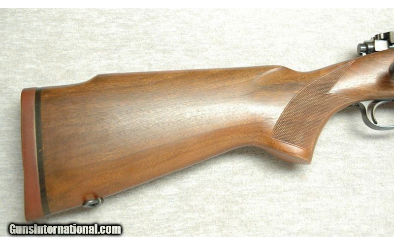 Description: Winchester Model 70 Rifle. Excellent, light wear, small nicks and scratches. Chambered for the powerful .375 H&H Magnum, a good choice for hunting many types of big game animals. .375 H&H Magnum SOLD Chambers: Bolt action Metal Condition: Excellent Wood Condition: Excellent Bore Condition: Bright Barrels: 24 Triggers: Factory Stock Dimensions: 13 3/4" LOP Fore End: Checkered Butt Pad: Factory pad Sights: Iron sights and drilled and tapped for scope mounting Item Location: La Vista, NE |