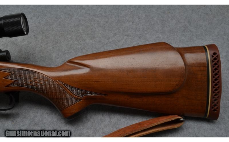 Description: A nice Winchester Model 70 bolt action rifle in .375 H&H. Made in 1969, this gun comes with a Baush and Lomb Balvar 5 Scope and quick detach mount. SOLD Manufacturer: 1967 Caliber Info: .375 H&H Metal Condition: Good with light handing marks Wood Condition: Good with light handing marks Bore Condition: Shiny and bright Barrels: 24 Inch med weight Triggers: Factory trigger Stock: Walnut pistol grip stock with checkering. Stock Dimensions: 13 1/2" LOP Fore End: Walnut checkered forearm Butt Pad: Winchester red recoil pad Weight: 10.4 lbs Sights: Factory sights and Baush and Lomb Blavar 5 power scope Item Location: Woodbury, MN |