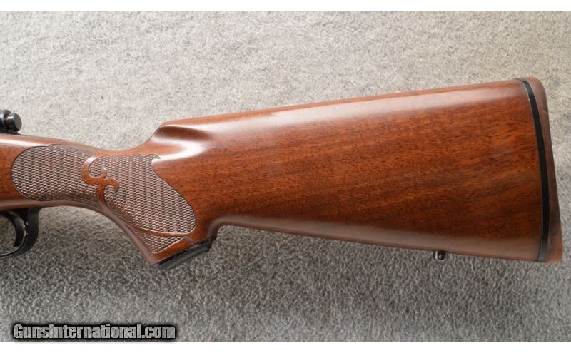 Description: This is a very nice clean Winchester Model 70 Classic Featherweight in .30-06 Sprg. The blue finish on the receiver and barrel are like new. The trigger guard has a few scratches but otherwise the metal is excellent. The walnut stock is a nice grade of wood with a checkered pistol grip a grip cap and schnabel. All in all a great little rifle. .30-06 Springfield SOLD Chambers: Bolt action repeater. Metal Condition: Excellent with a few marks on the trigger guard. Wood Condition: Excellent. Barrels: 22 inch gloss blue. Triggers: Single blue. Stock Dimensions: 13 3/8 inch LOP. Fore End: Matching checkered walnut with a schnabel. Butt Pad: Winchester red rubber butt pad. Sights: Comes with Warren steel scope bases.. Item Location: Owatonna, MN |