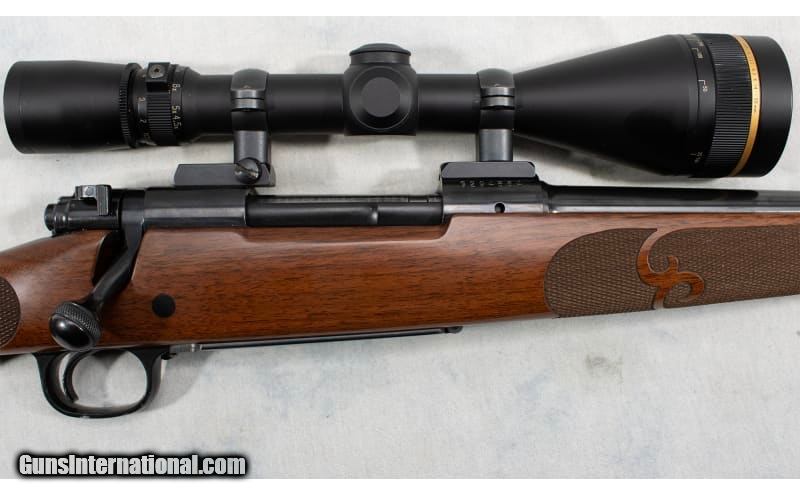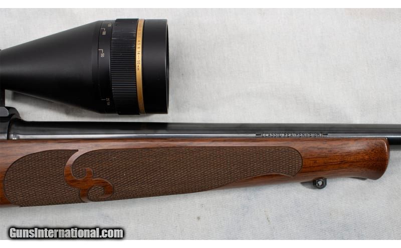 Description: The Winchester Model 70 is a classic American hunting rifle. This Classic Featherweight features a jewelled bolt and walnut stock. It comes equipped with a Leupold VX-III 4.5-14x50mm scope. All WV firearm sales are subject to no sales tax. .30-06 Springfield SOLD Metal Condition: Excellent Wood Condition: Excellent Bore Condition: Excellent Barrels: 22 inch Weight: 8lbs 2oz Sights: Leupold VX-III Item Location: Morgantown, WV |