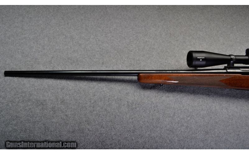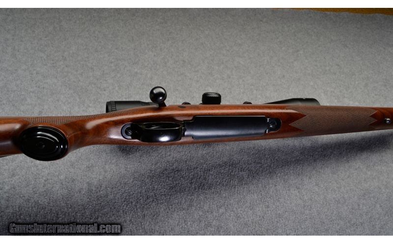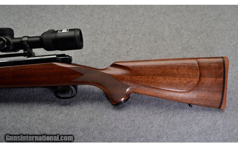 Description: This rifle is in very good condition. Hardwood stock with checkering and cheek piece, controlled feed and Nikon scope. .338 Winchester Magnum SOLD Metal Condition: Very Good Wood Condition: "Very Good, minor handling marks Bore Condition: Very Good Barrels: 26 Triggers: Serrated Stock Dimensions: 13.5" LOP Butt Pad: Winchester rubber pad Weight: 9.25 lbs. Sights: Nikon PR51 Prostaff BDC 3.5-14X40 Item Location: Springfield, OR |