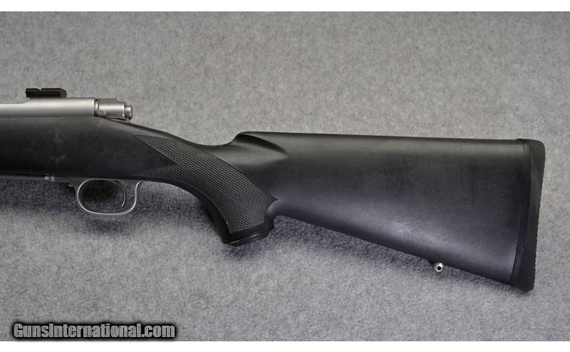 Description: This Winchester 70 Classic Stainless in .375 H&H Magnum features a synthetic stock, stainless barrel, and jeweled control feed bolt. Original hard sights and bases for scope. .375 H&H Magnum SOLD Metal Condition: Very Good Bore Condition: Very Good Barrels: 25" stainless Triggers: Serrated Stock Dimensions: 13.75" LOP Butt Pad: Decelerator rubber pad Weight: 9.5 lbs. Sights: Adjustable flip-up rear sight with hooded post front sight Item Location: Springfield, OR |
