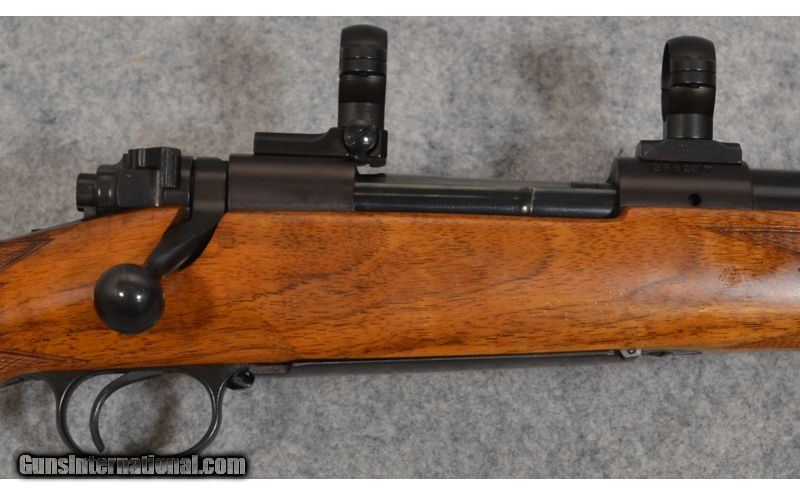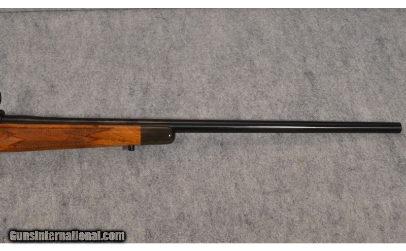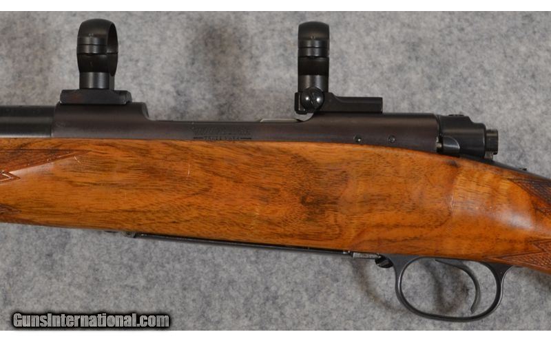 Description: This Winchester model 70 bolt action is a beautiful gun. The light wood stock has a beautiful pattern and doesn't have any damage. The metal of the gun is still in great shape with no markings or blemishes. The rifle does come with 1" ring mounts so the only thing you need to get is a scope for the gun. This is a great looking Winchester rifle that would be great for hunting any large game in North America and would make a fine piece for any collection. 7mm Remington Magnum SOLD Chambers: Bolt action repeater. Metal Condition: Excellent. Wood Condition: Excellent. Barrels: 25" Krieger barrel with 1" ring mounts. Triggers: Single blued trigger. Stock Dimensions: 13 3/8" LOP. Fore End: Ebony tipped. Butt Pad: Rubber recoil pad. Sights: Scope bases and 1" rings. Item Location: Louisville, KY |