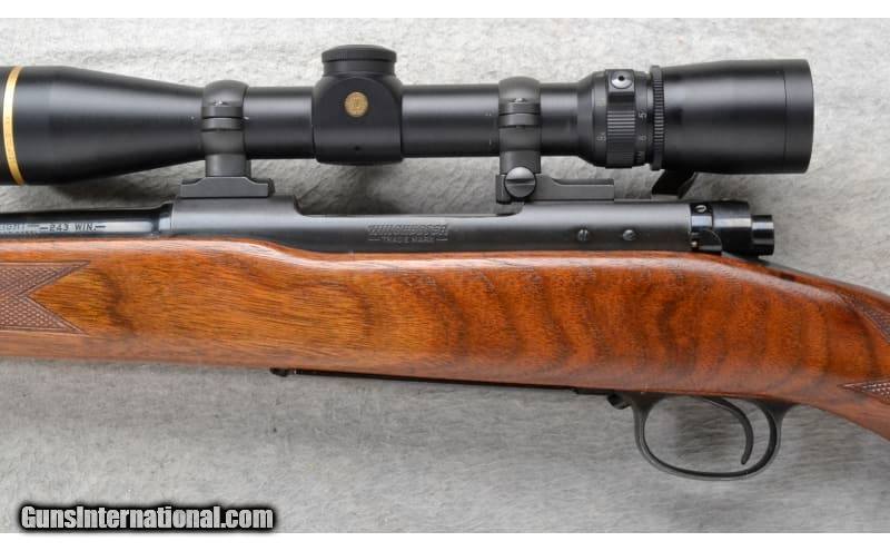 Description: This Winchester Model 70 Featherweight is a right hand bolt action rifle in .243 Win. Cal. It has a 22 inch barrel. A raised hooded front blade sight and a folding adjustable notch middle sight. It is outfitted with a Leupold VX-III Scope. The butt stock is a checkered grip walnut pistol grip. The forearm is a checkered grip walnut. .243 Winchester SOLD Chambers: Internal magazine with a hinged floorplate. Metal Condition: Very Good. Wood Condition: Very Good. Some light handling marks. Bore Condition: Excellent. Barrels: 22 inch. Stock Dimensions: LOP 13 1/2 inches. Fore End: Checkered grip walnut. Butt Pad: Winchester checkered black plate. Weight: 8 lb. 2 oz. Sights: Raised hooded front blade. Folding adjustable notch middle. Leupold VX-III 2.5-8x36mm Scope. Item Location: Richfield, WI |