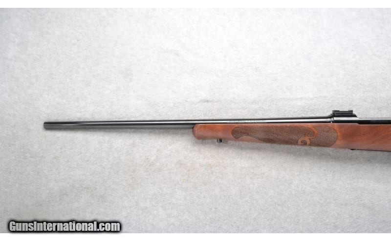 Description: This Winchester Model 70 Featherweight is a right hand bolt action rifle in .30-06 Sprg. Cal. Only. It has a 22 inch barrel. Scope mount bases attached. The butt stock is a checkered grip walnut pistol grip with a black cap. The forearm is a checkered grip walnut schnabel style. .30-06 Springfield SOLD Chambers: Internal magazine with a hinged floorplate. Metal Condition: Excellent. Wood Condition: Excellent. Bore Condition: Excellent. Barrels: 22 inch. Stock Dimensions: LOP 13 3/4 inches. Fore End: Checkered grip walnut schnabel style. Butt Pad: Decelerator black rubber recoil pad. Weight: 7 lb. 0 oz. Sights: Scope mount bases attached. Item Location: Richfield, WI |