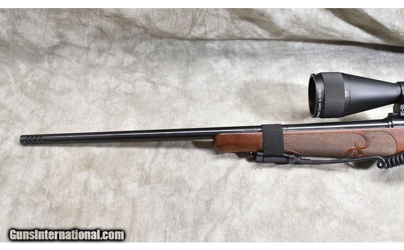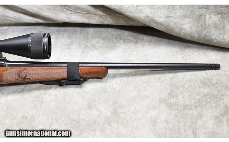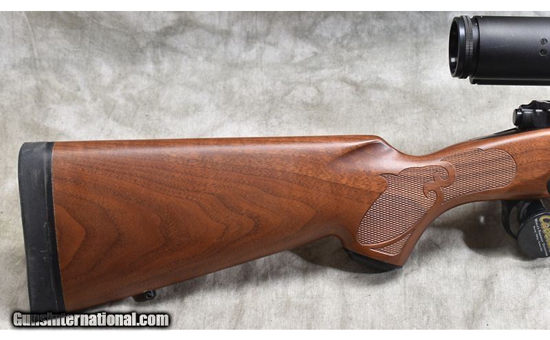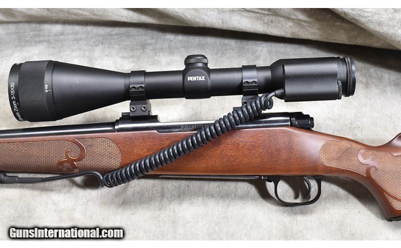 Description: This rifle features a ported barrel, jeweled bolt with claw extractor, internal magazine with hinged floor plate, and soft recoil pad. .30-06 Springfield SOLD Chambers: 4 Metal Condition: Excellent. Wood Condition: Excellent. Bore Condition: Shiny and bright with good rifling. Barrels: "21-1/2 inch, ported. Triggers: Factory trigger. Stock Dimensions: 13-3/8 inch LOP. Fore End: Slim Schnabel. Butt Pad: Soft rubber pad. Weight: 9 lb - 3 oz Sights: "Scope-ready, outfitted with a Pentax Ultimate Zoom 3-15x50mm scope with lit reticule. Item Location: Rogers |