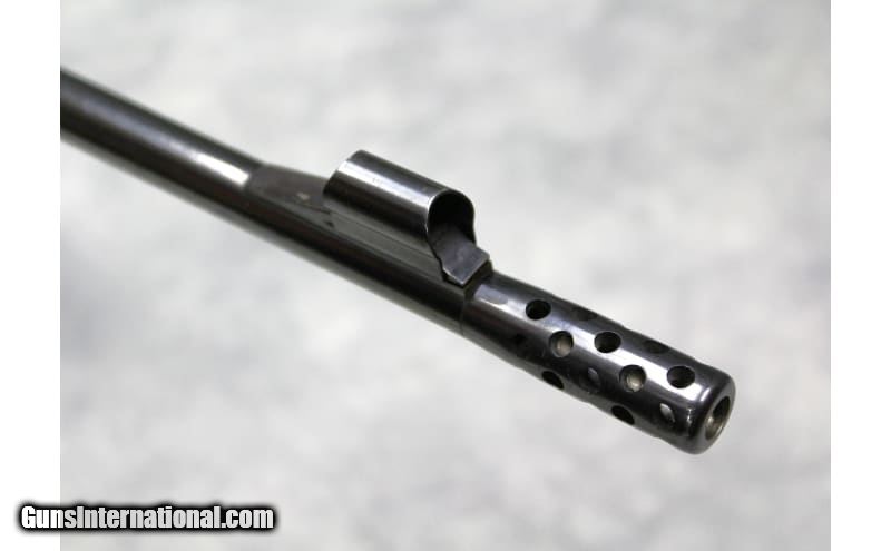 Description: This USED Winchester 70 Featherweight is chambered in .30-06 and manufactured in early 1959. It features a 22-inch threaded barrel with a fixed, hooded front post sight, buckhorn flip up rear sight and a Redfield 3x-9x scope. It also has a muzzle brake and sling included. -PLEASE NOTE-The synthetic stock shows signs of abrasions, scratches and scrapes. .30-06 Springfield SOLD Metal Condition: Overall Great with some slight pitting on the barrel and small scratches and marks from handling/use. Bore Condition: Great with visible rifling grooves. Barrels: 22 Weight: 9 LBS Sights: "Fixed hooded front post sight, buckhorn flip up rear sight, Redfield 3x-9x scope. Chokes: 22" threaded with muzzle brake Item Location: Las Vegas, NV |